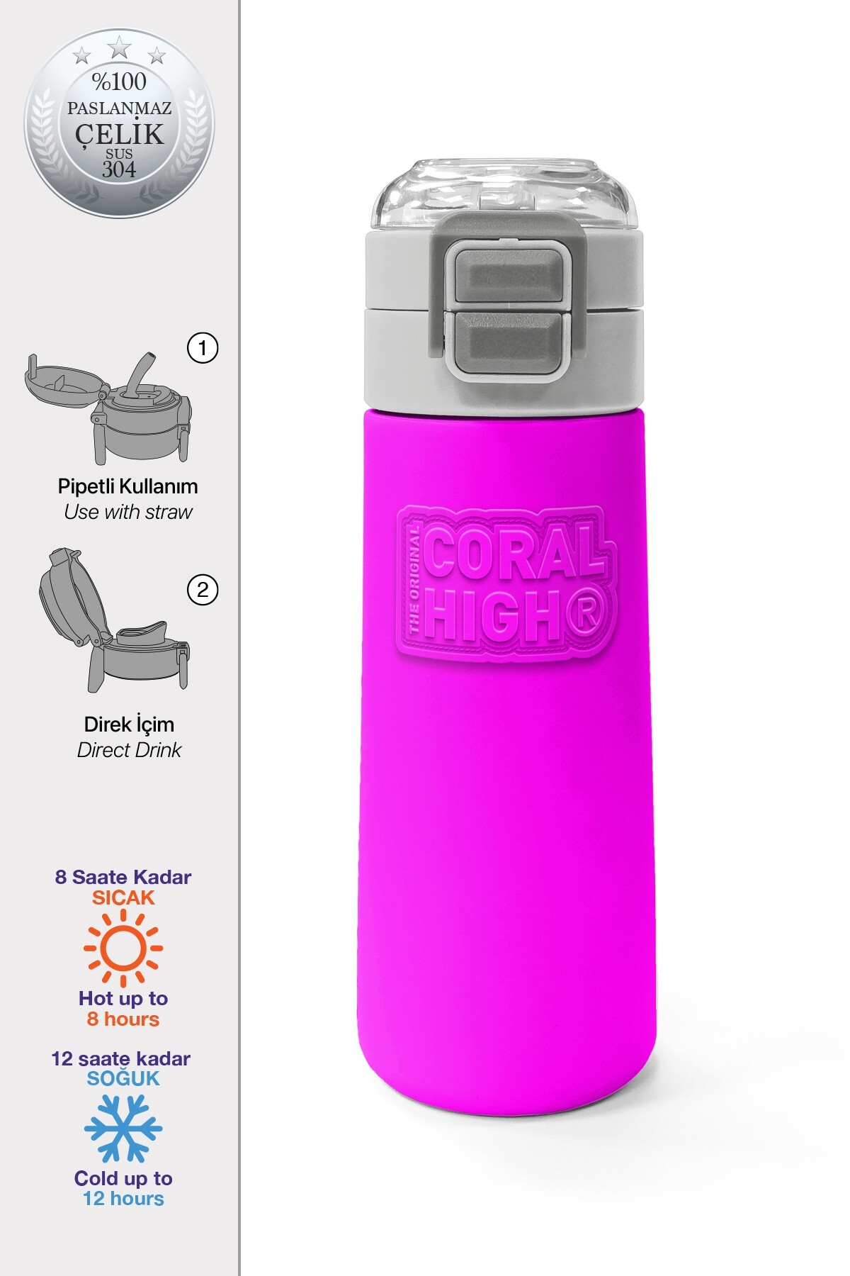 Coral High Kids Pembe Pipetli ve Direkt İçim Çelik Termos 500 ml 31843