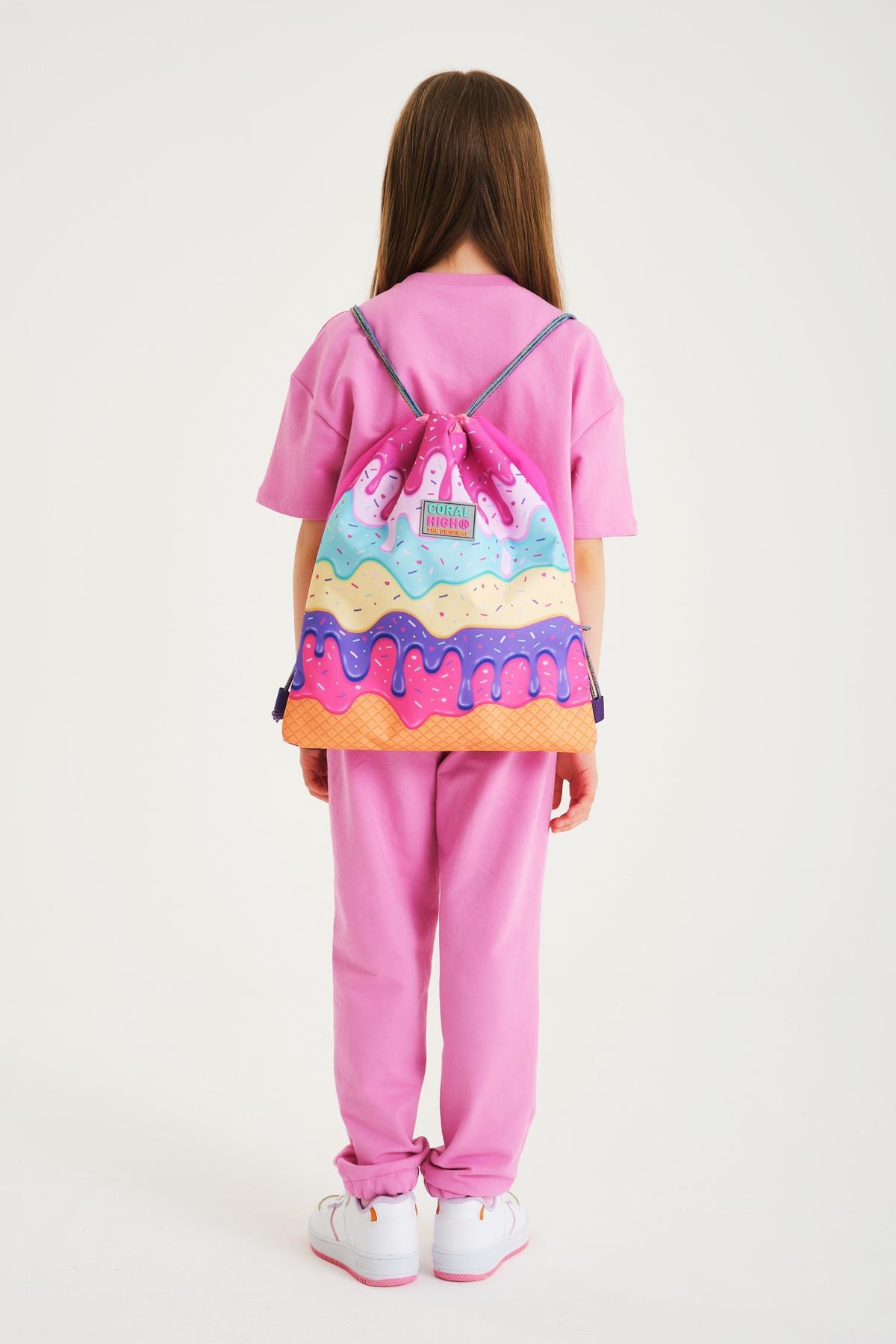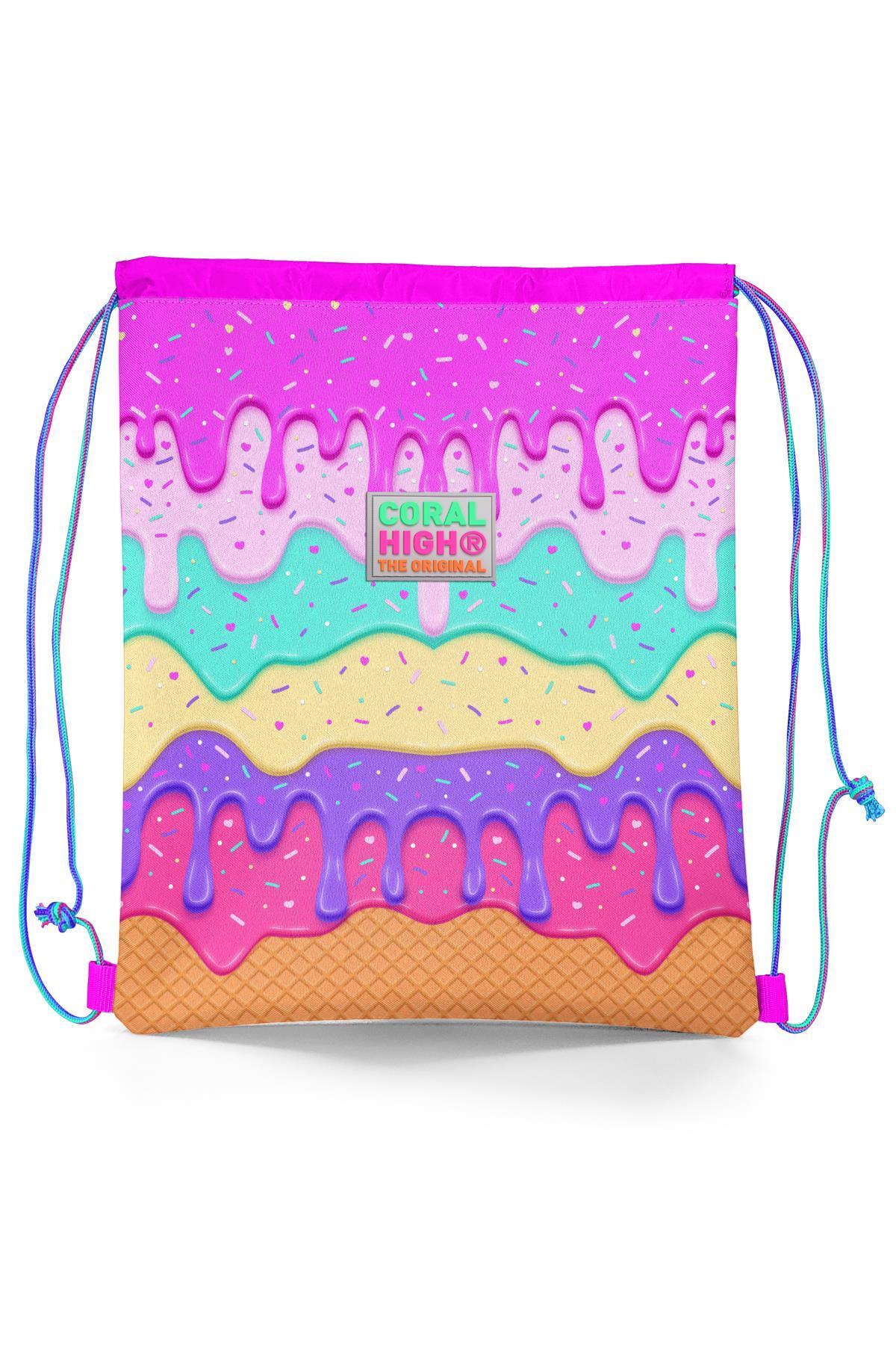 Coral High Kids Pembe Rengarenk Dondurma Desenli İpli Büzgülü Sırt Çantası 22431
