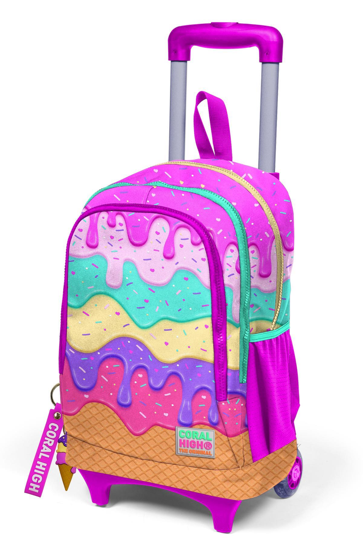 Coral High Kids Pembe Rengarenk Dondurma Desenli Üç Bölmeli Çekçekli Okul Sırt Çantası 23931