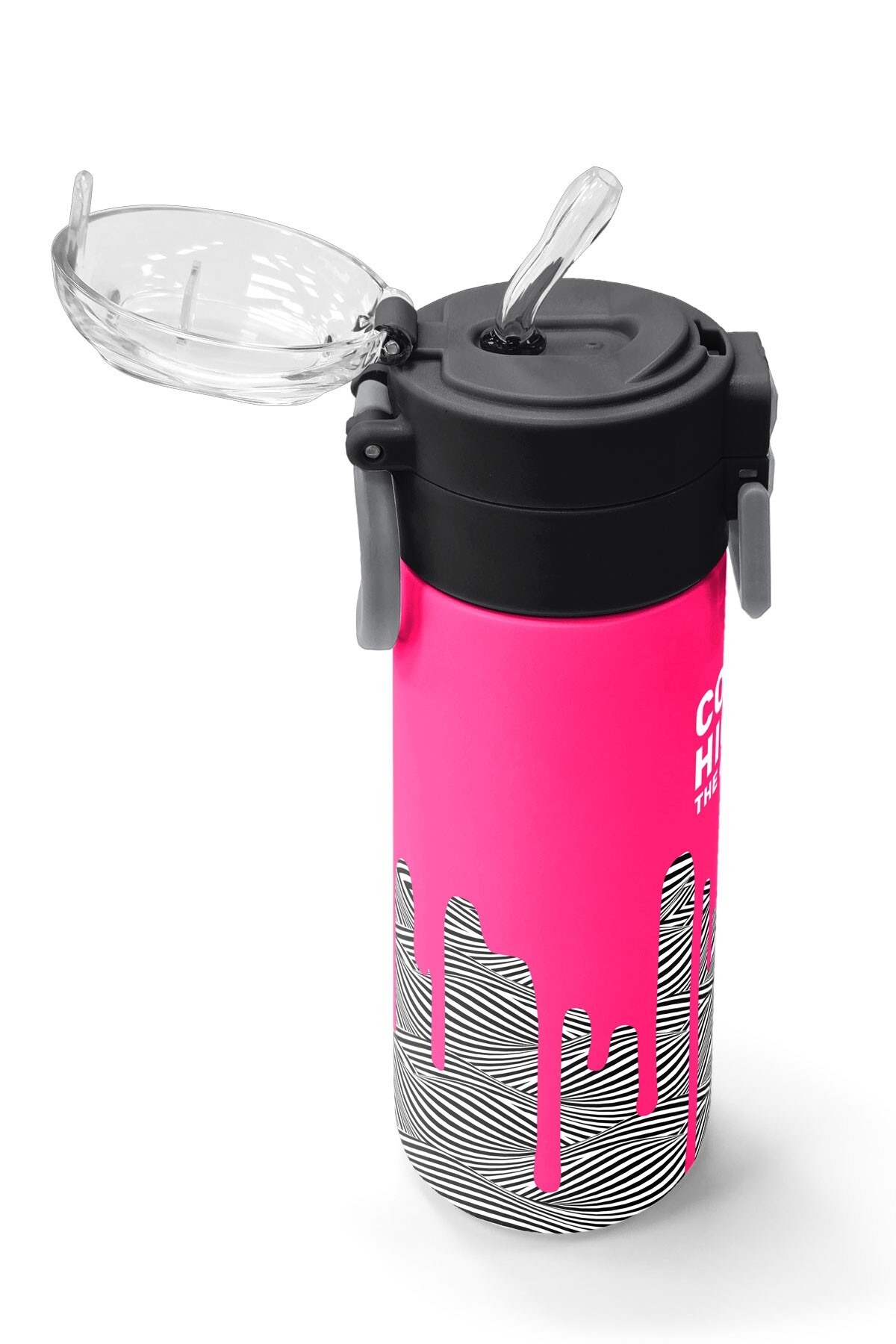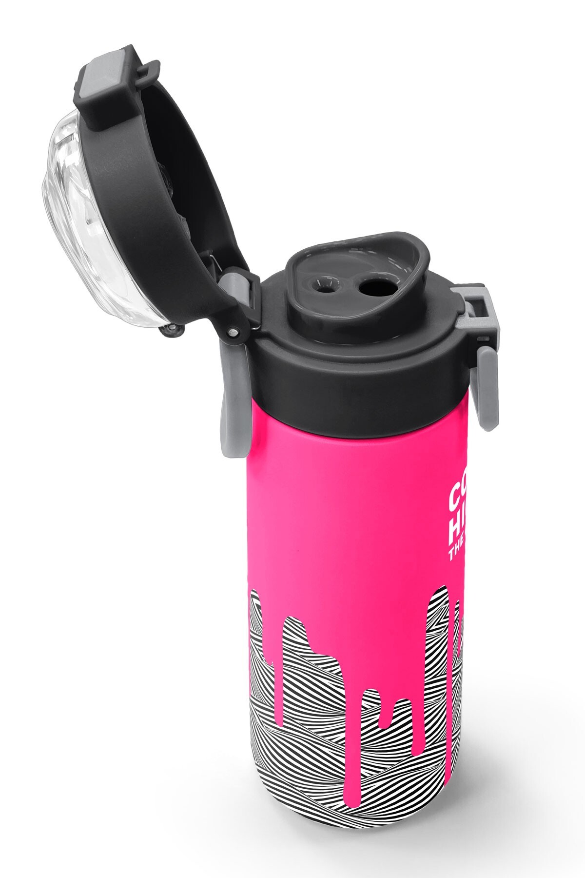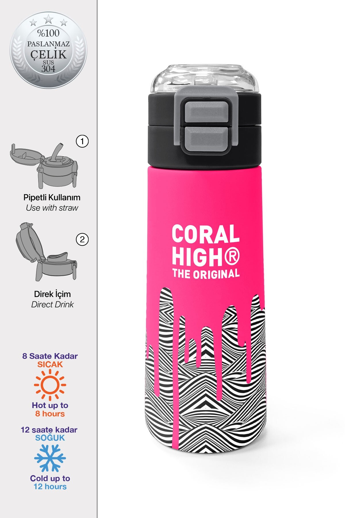 Coral High Kids Pembe Siyah Beyaz Desenli Pipetli ve Direkt İçim Çelik Termos 500 ml 31878