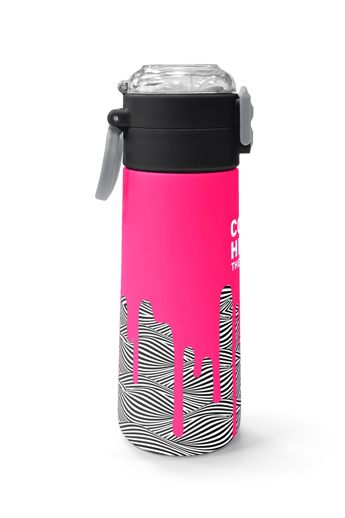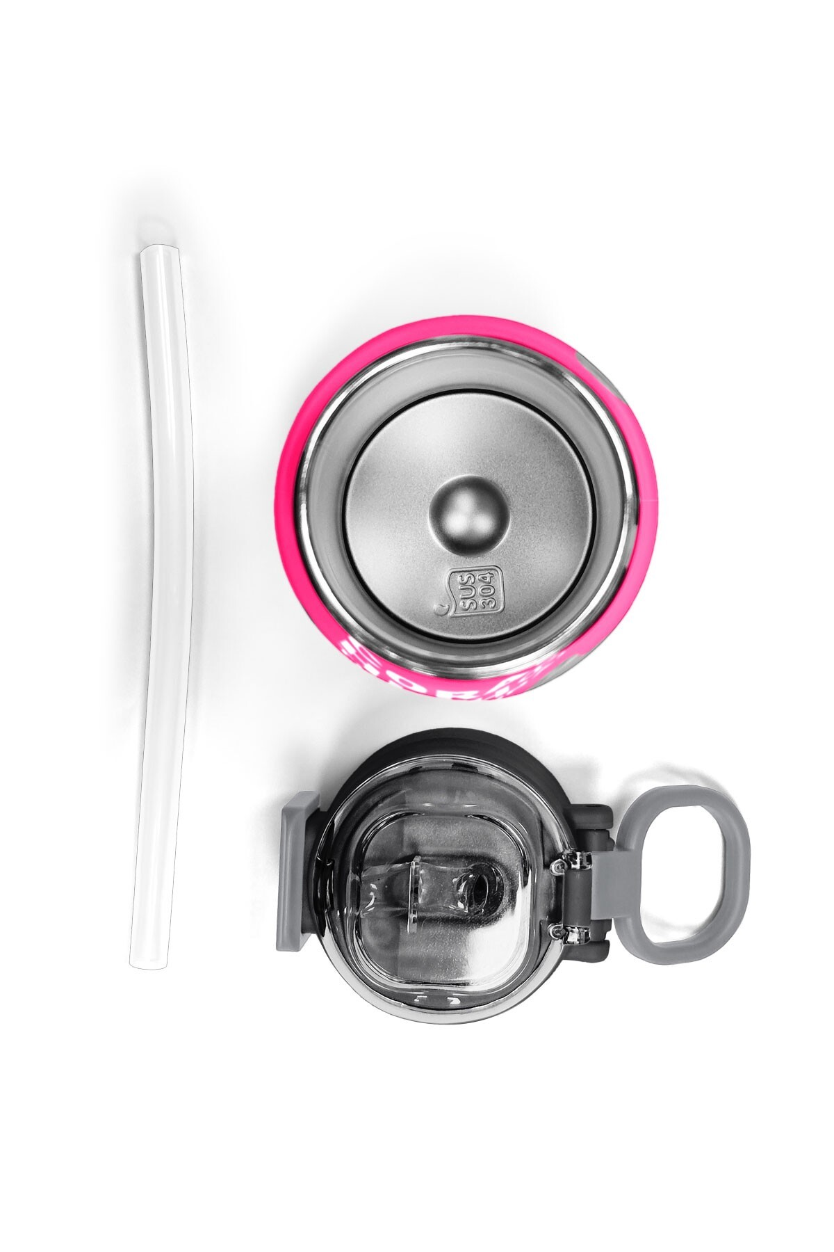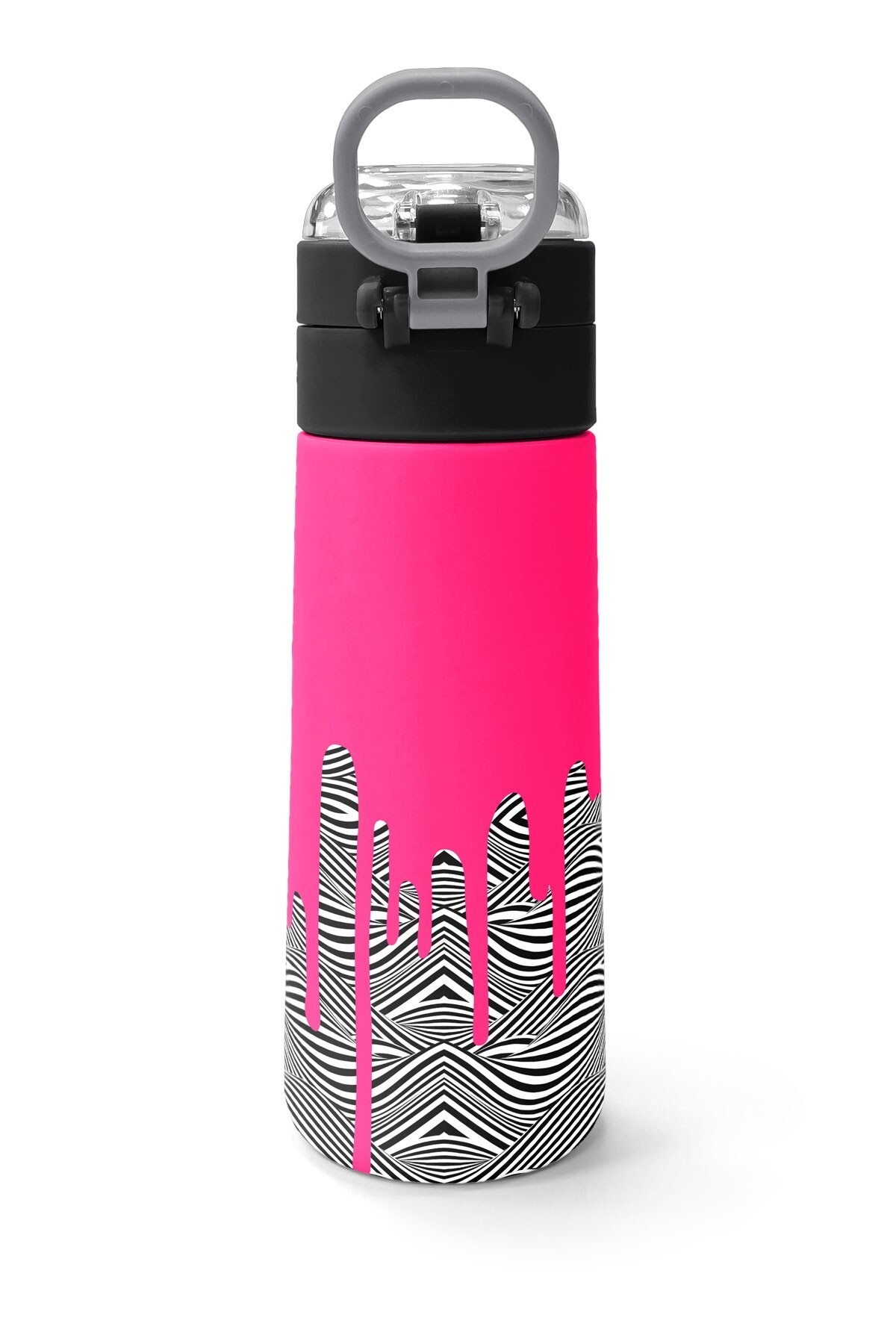 Coral High Kids Pembe Siyah Beyaz Desenli Pipetli ve Direkt İçim Çelik Termos 500 ml 31878