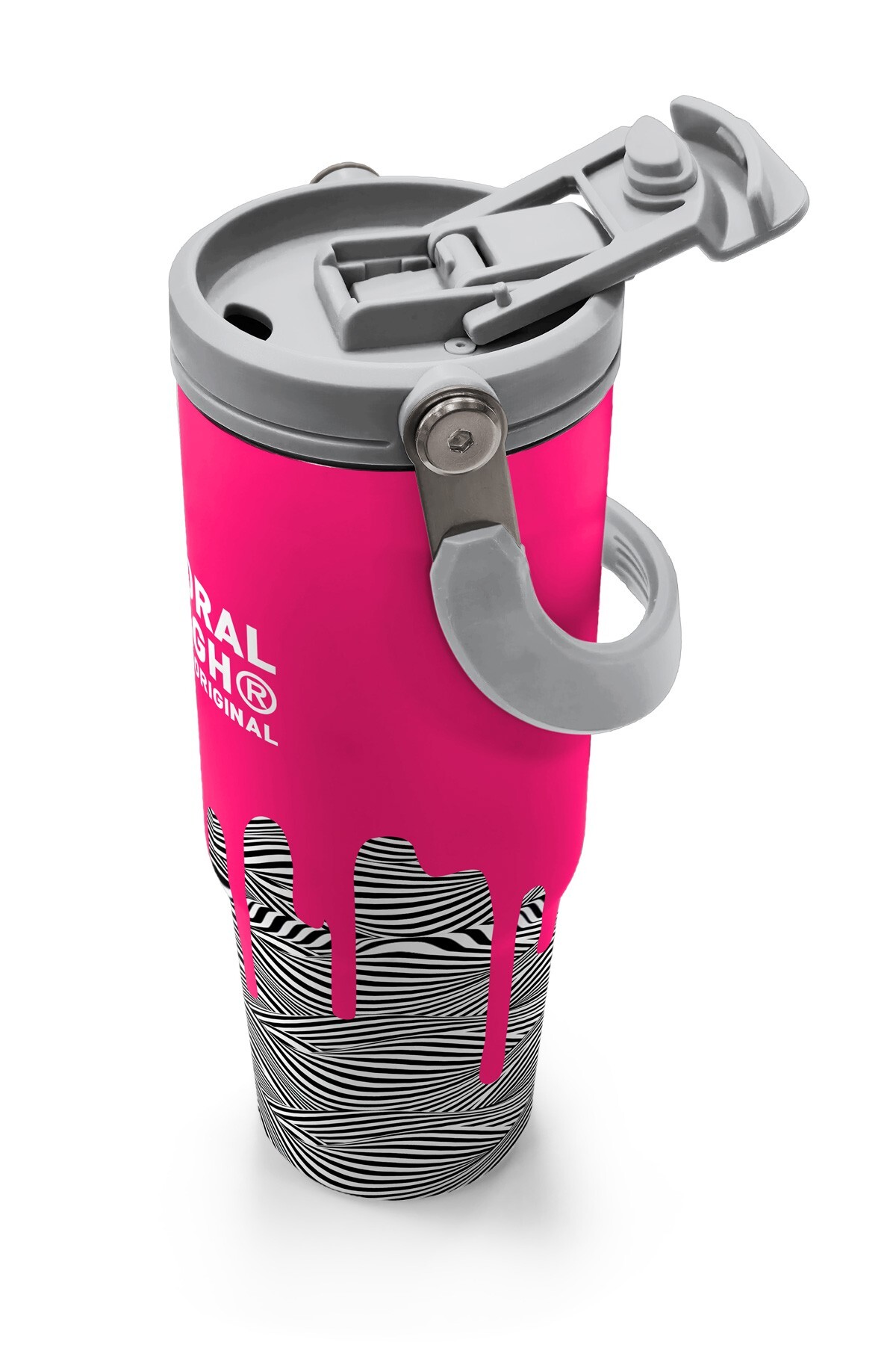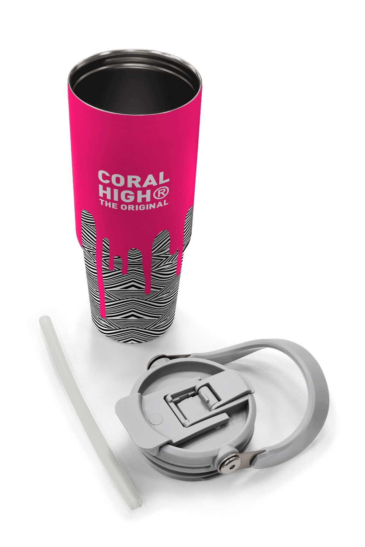 Coral High Kids Pembe Siyah Beyaz Desenli Pipetli ve Direkt İçim Çelik Termos 900 ml 38718