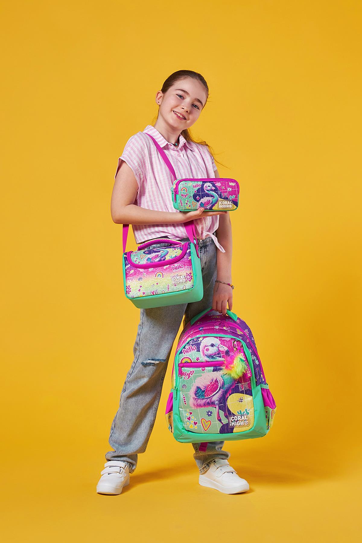 Coral High Kids Pembe Su Yeşili Flamingo Desenli 3’lü Okul Çanta Seti SET0123647