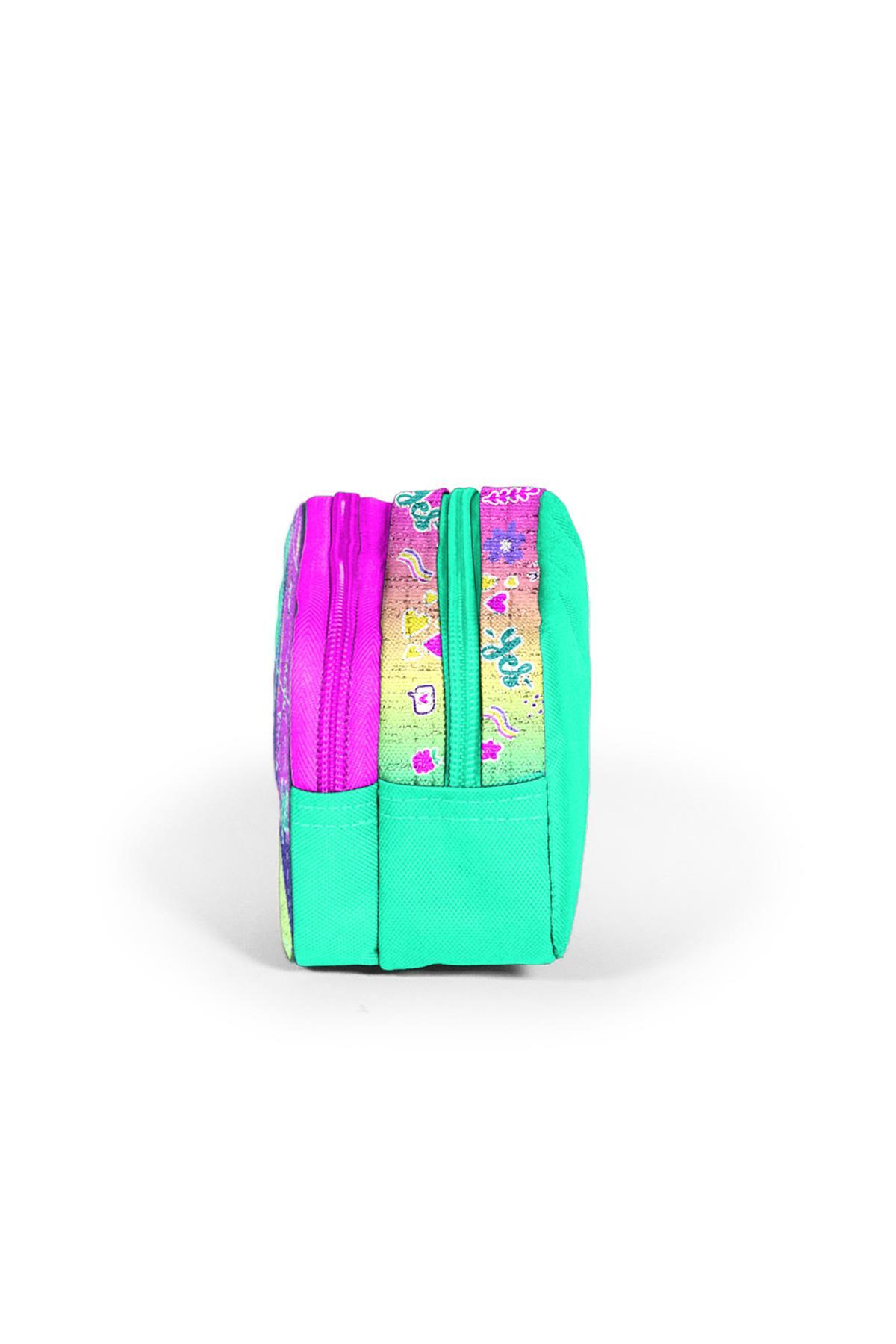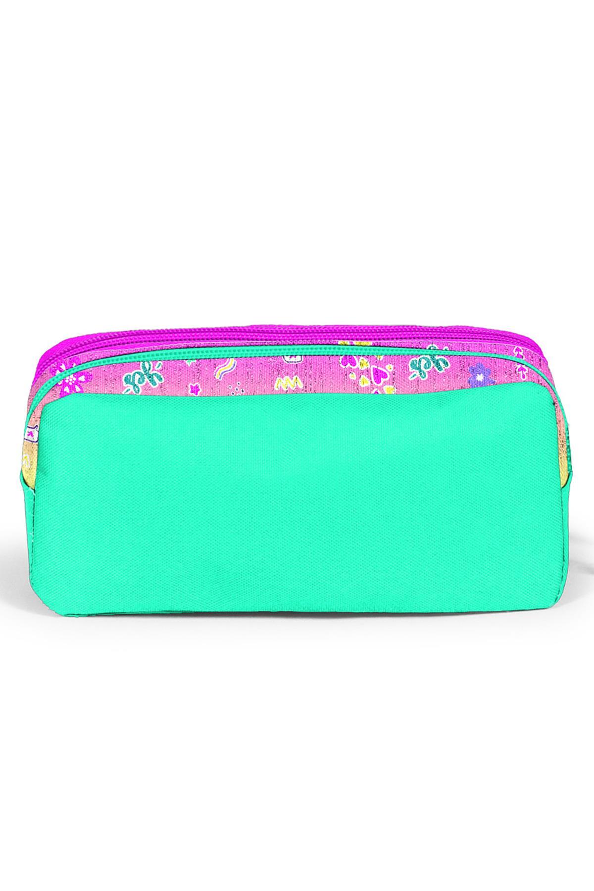 Coral High Kids Pembe Su Yeşili Flamingo Desenli İki Bölmeli Kalem Çantası 12080