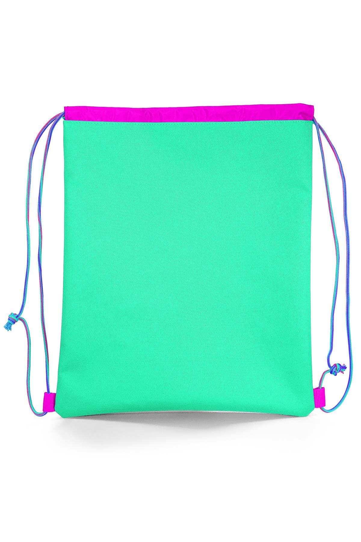 Coral High Kids Pembe Su Yeşili Kedi Desenli İpli Büzgülü Sırt Çantası 22694