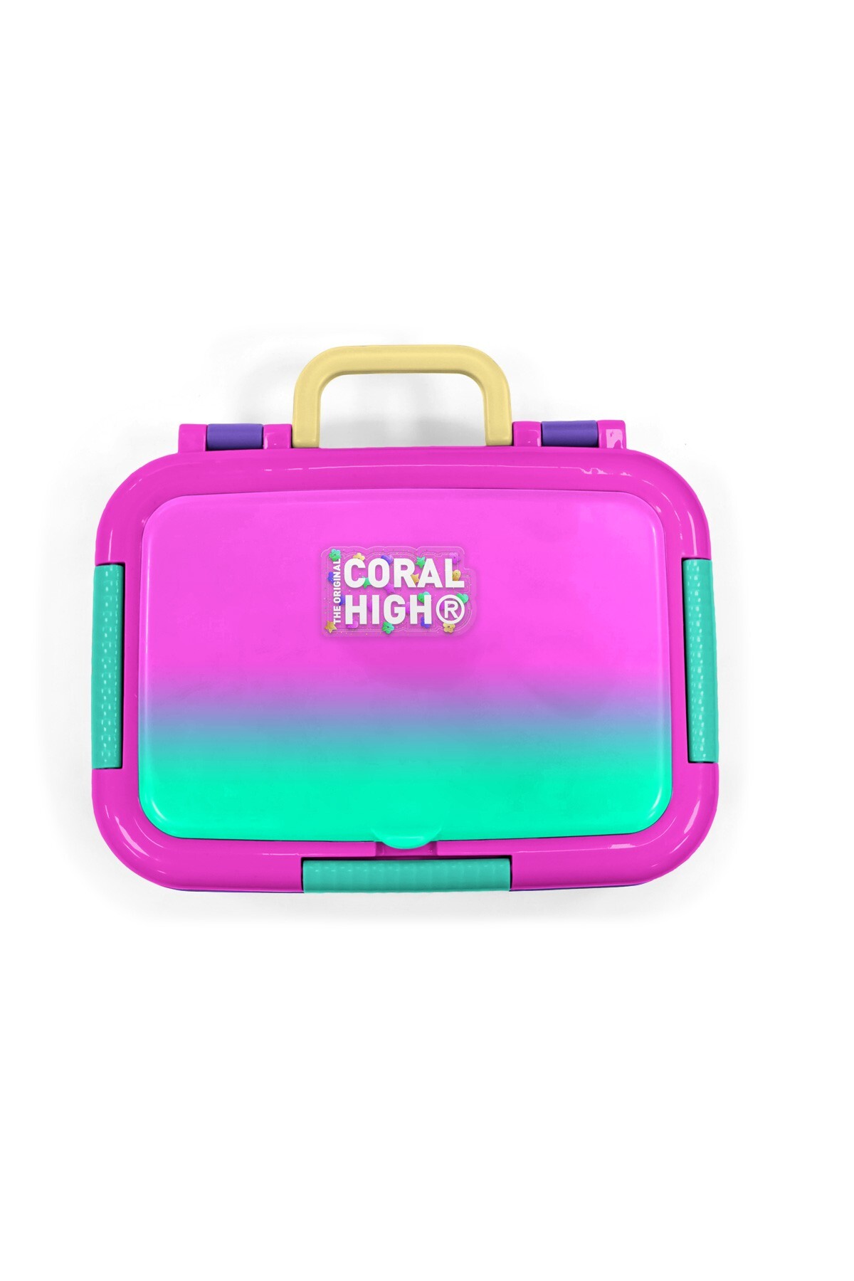Coral High Kids Pembe Su Yeşili Renk Geçişli Desenli Paslanmaz Çelik Beslenme Kabı 39362