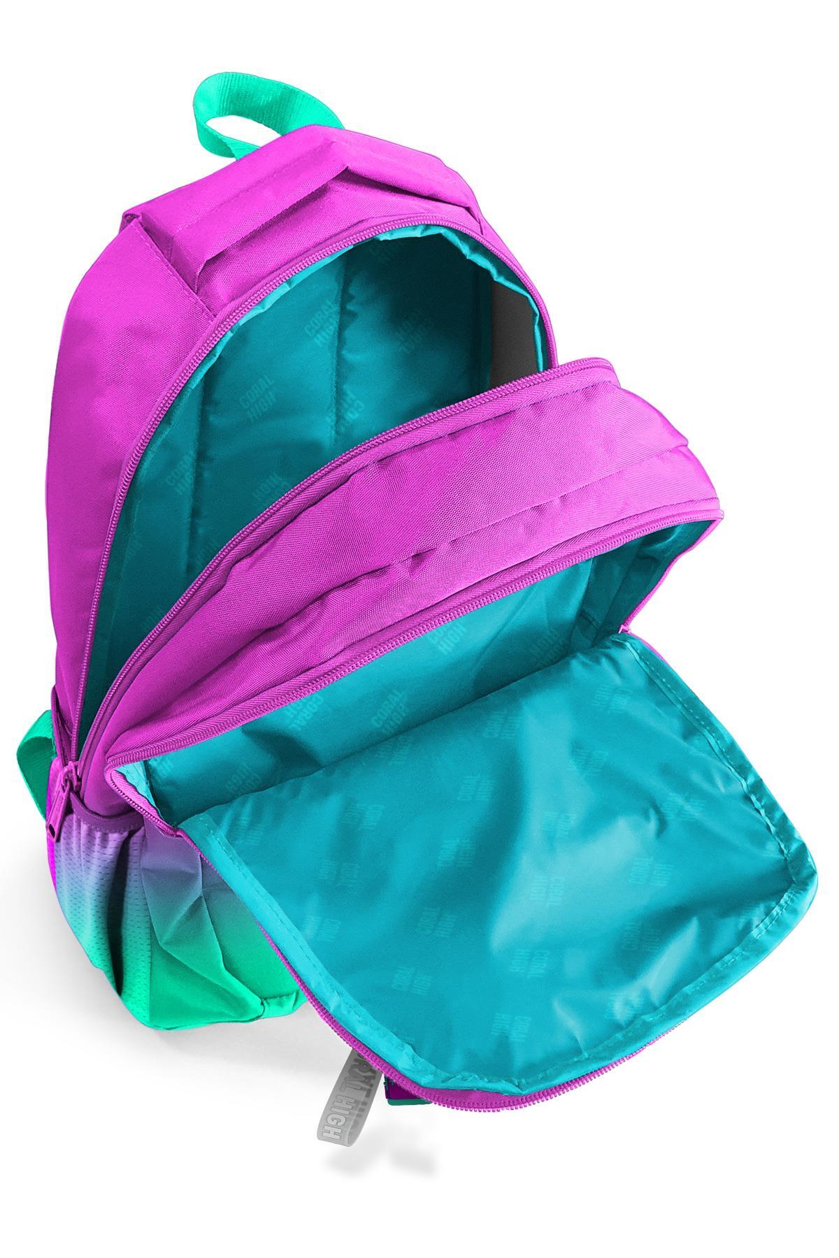 Çantanın yan kısımlarında 2 adet esnek file malzemeden suluk ve aksesuar cebi bulunmaktadır.