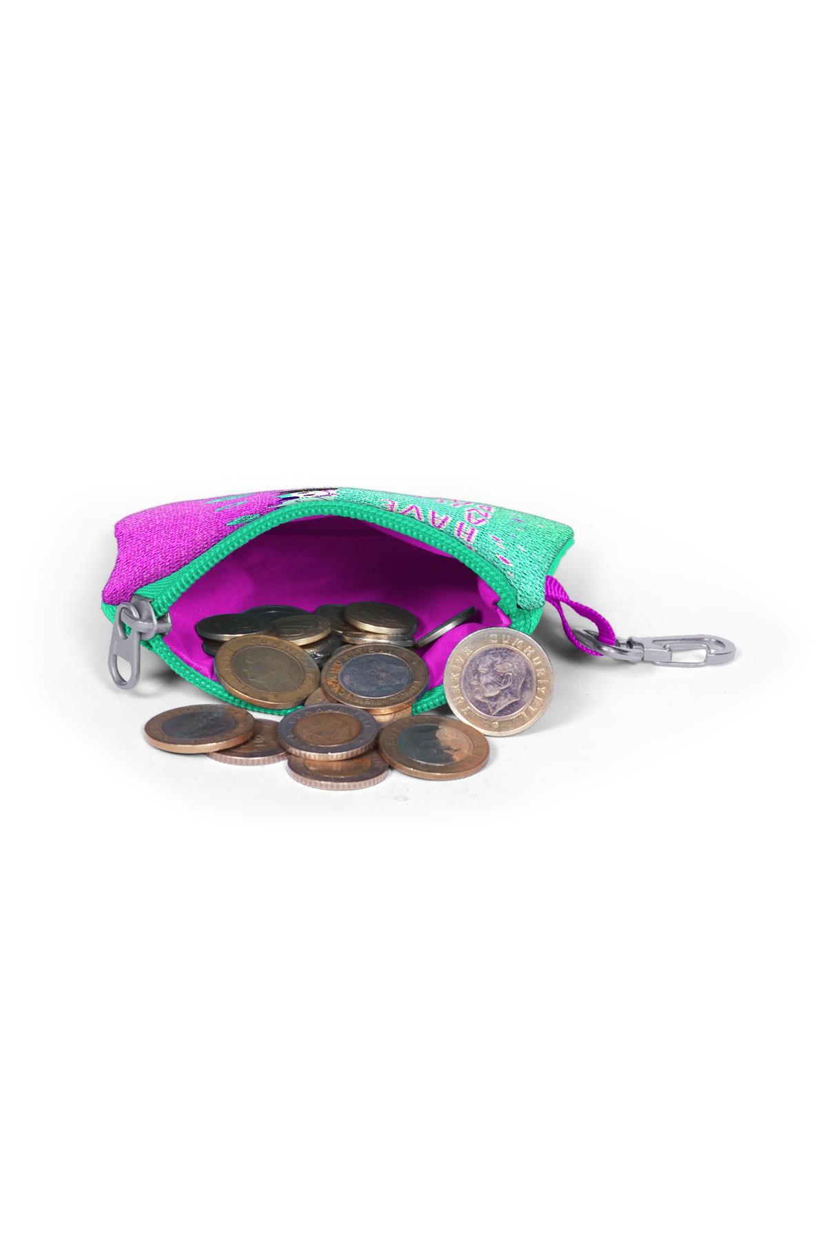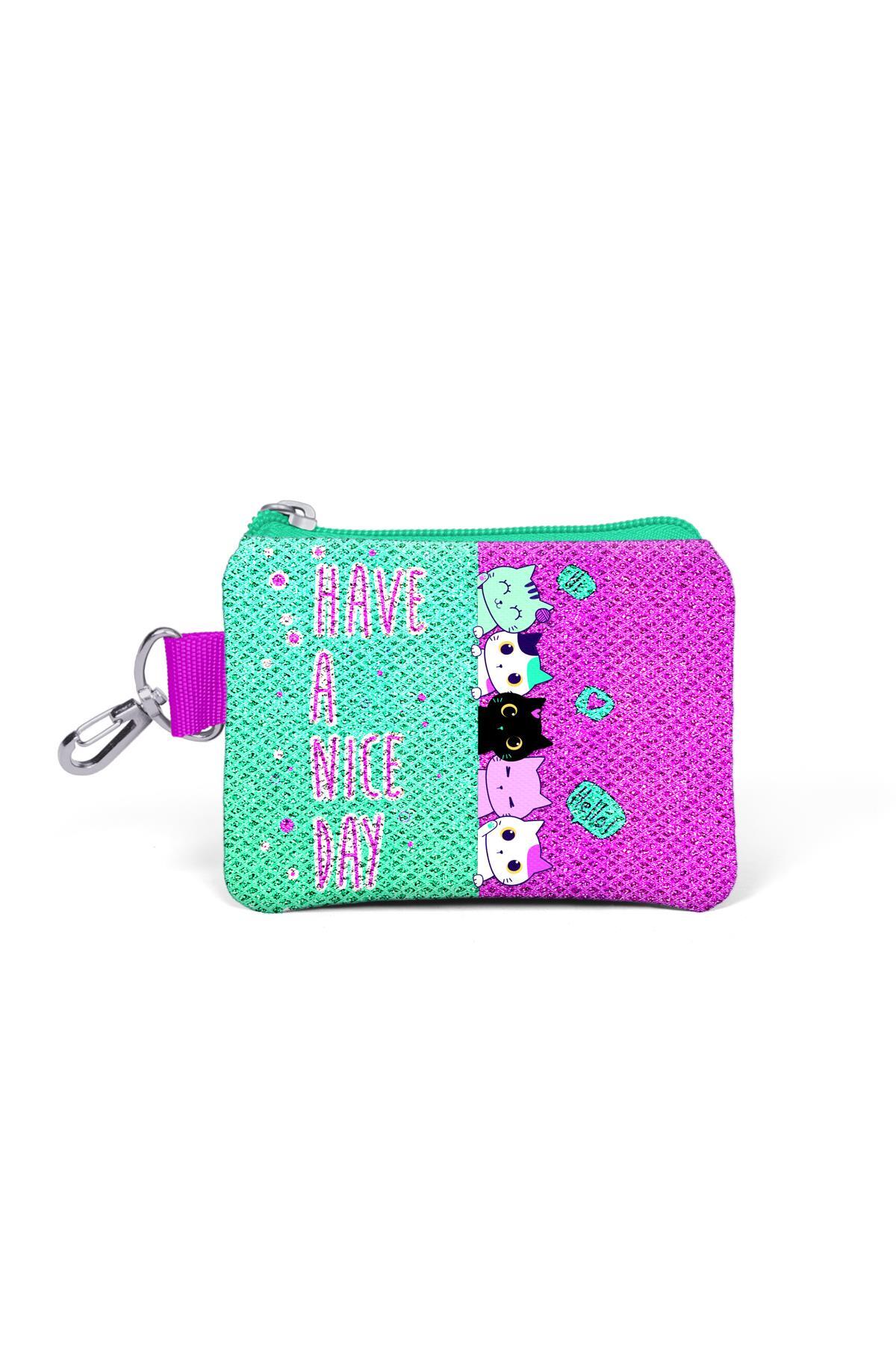 Coral High Kids Pembe Su Yeşili Kedi Desenli Simli Bozuk Para Çantası 21795