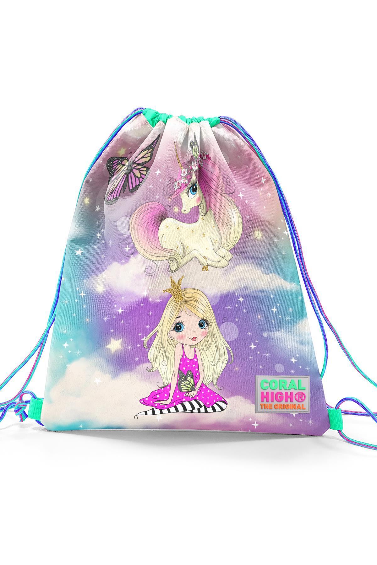 Coral High Kids Pembe Su Yeşili Unicornlu Kız Desenli İpli Büzgülü Sırt Çantası 22433