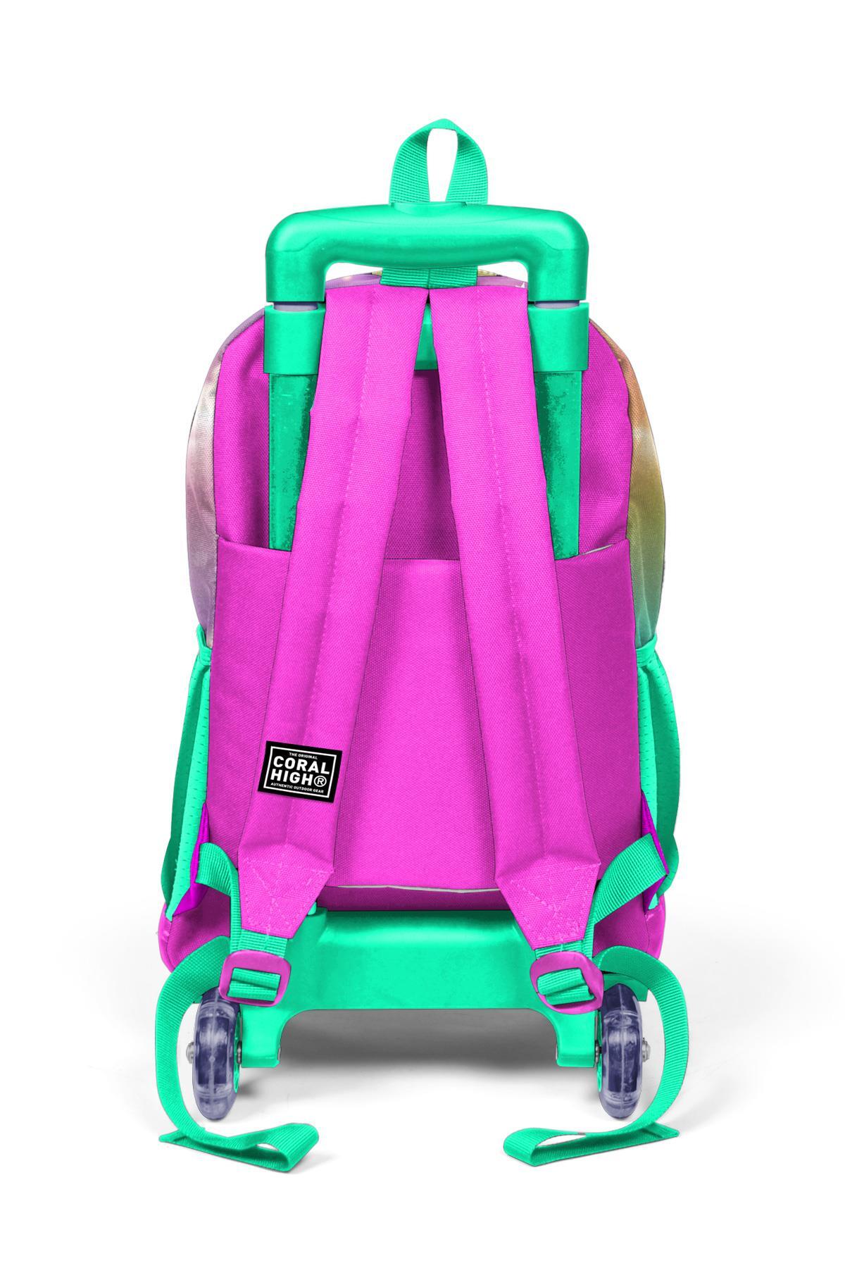 Coral High Kids Pembe Su Yeşili Unicornlu Kız Desenli Üç Bölmeli Çekçekli Okul Sırt Çantası 23933