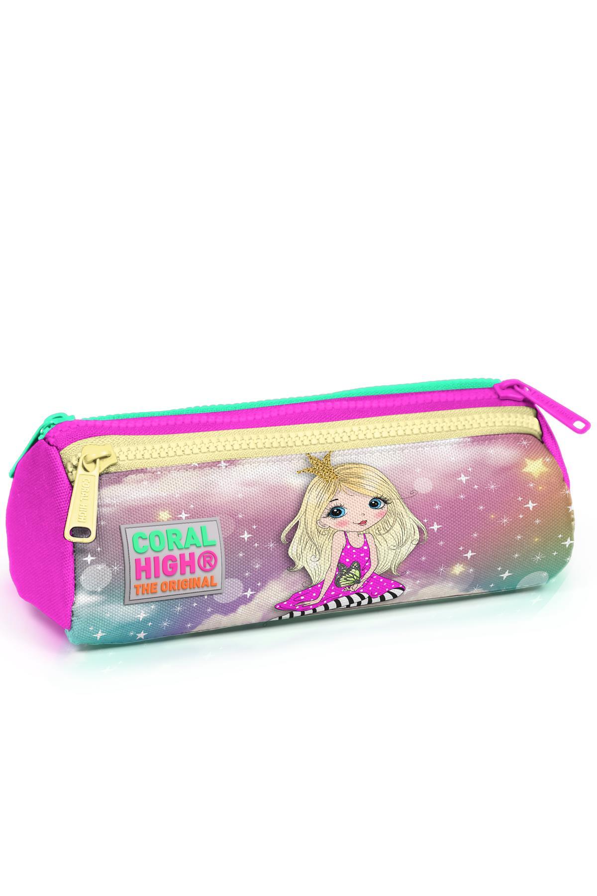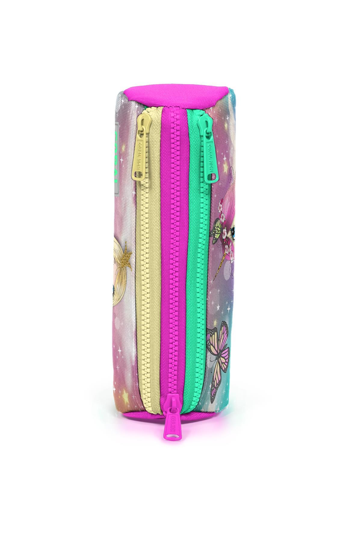 Coral High Kids Pembe Su Yeşili Unicornlu Kız Desenli Üç Bölmeli Kalem Çantası 22033