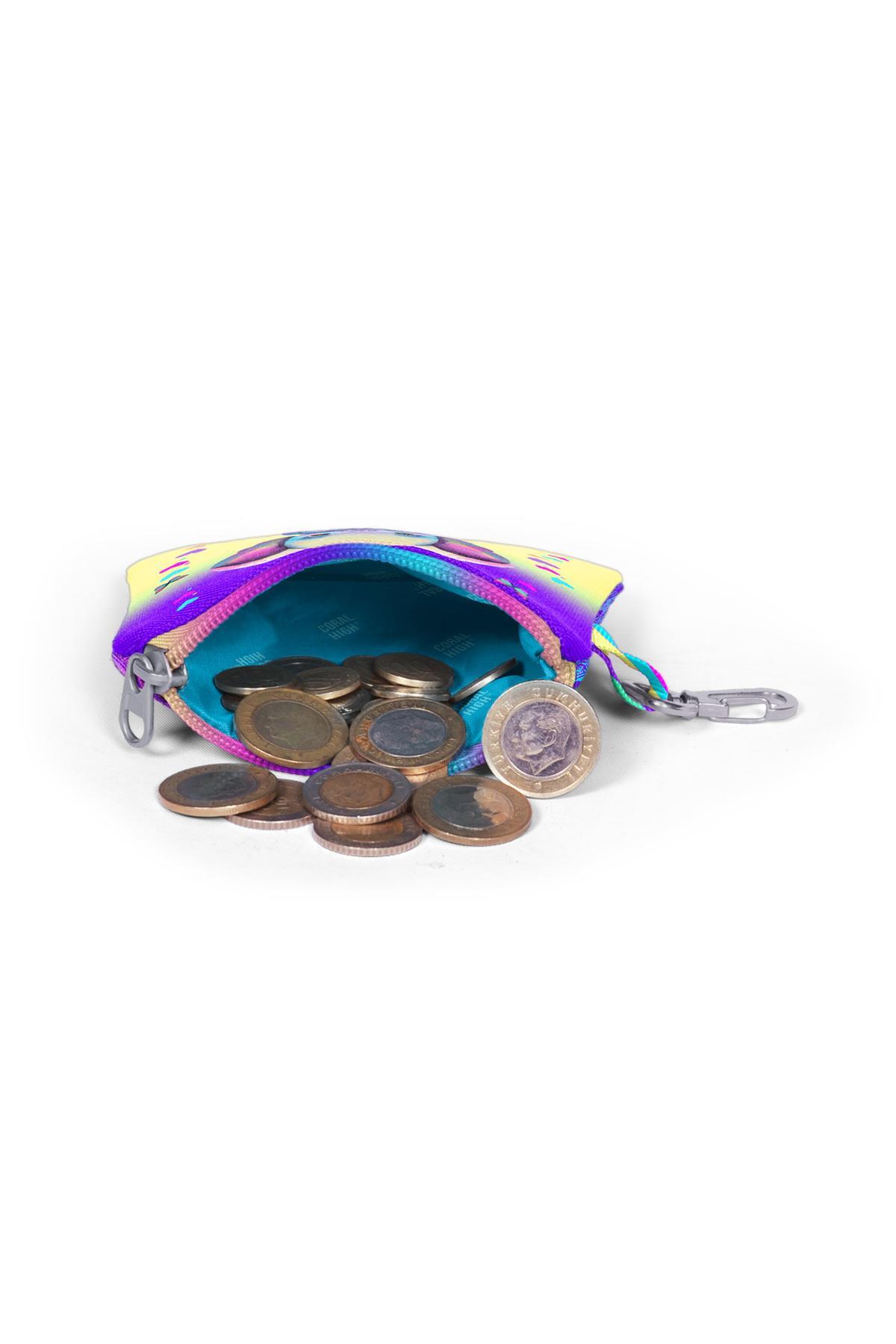 Tek bölmeli, fermuarlı bozuk para cüzdanı.
