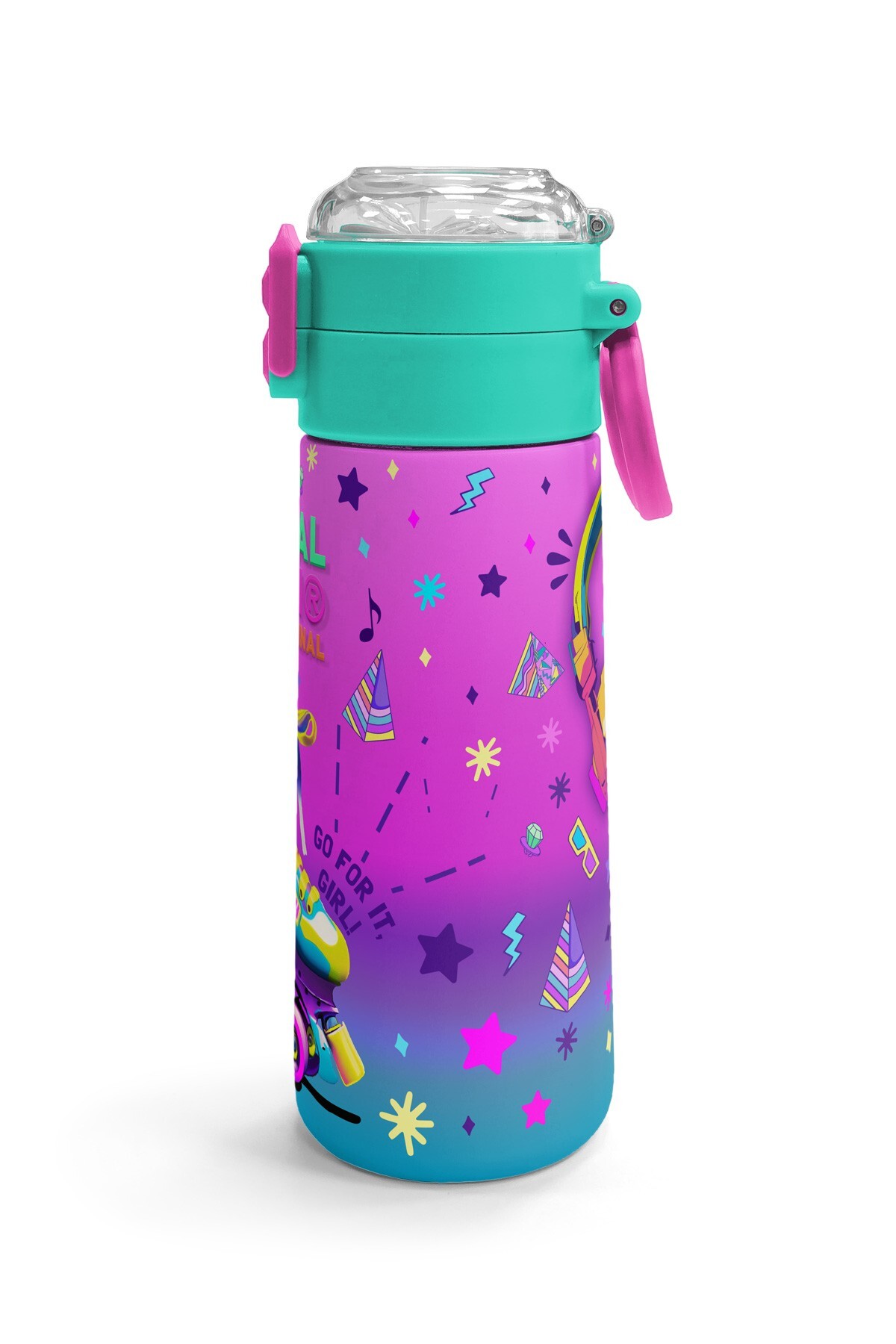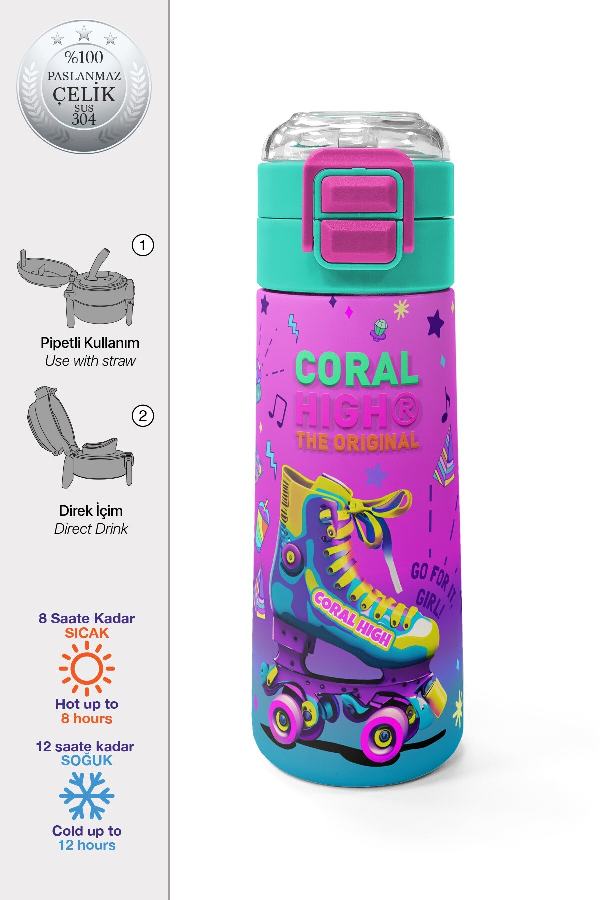 Coral High Kids Pembe Turkuaz Kulaklık Paten Desenli Pipetli ve Direkt İçim Çelik Termos 500 ml 31955
