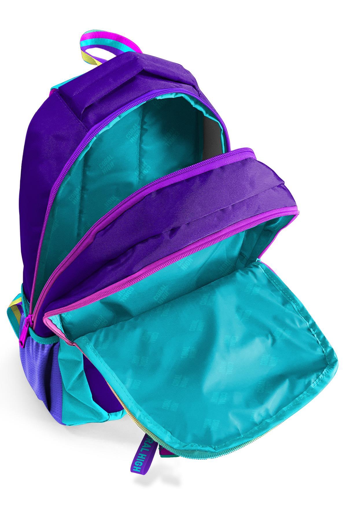 Çantanın yan kısımlarında 2 adet esnek file malzemeden suluk ve aksesuar cebi bulunmaktadır.