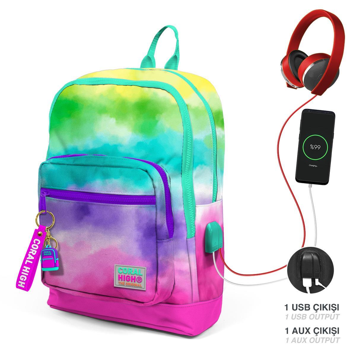 Coral High Kids Renkli Batik Desenli Dört Bölmeli USB'li Okul Sırt Çantası 23839