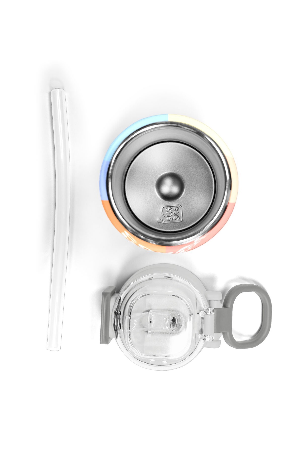 Coral High Kids Renkli Çizgili Desenli Pipetli ve Direkt İçim Çelik Termos 500 ml 31987
