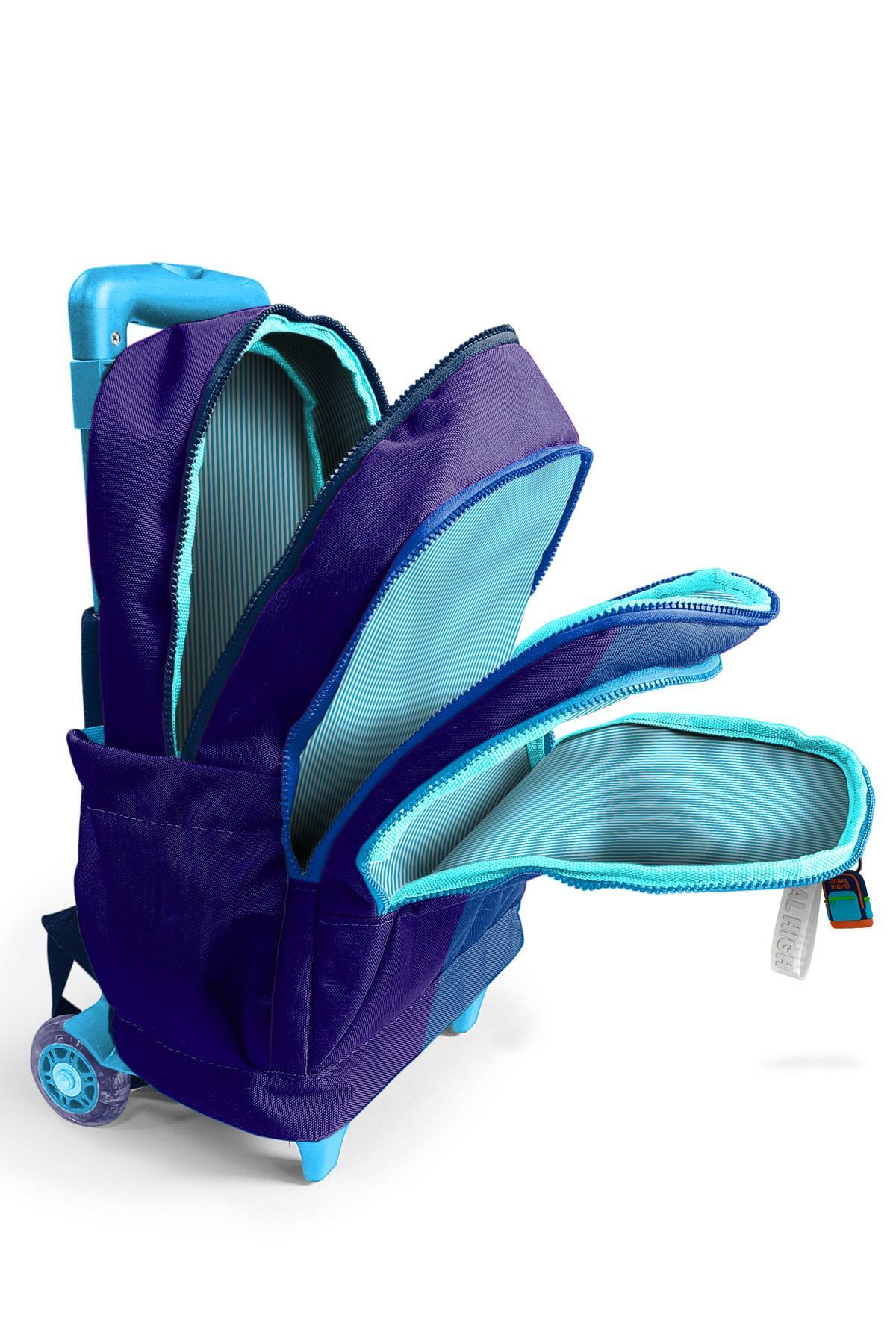 Coral High Kids Renkli Çizgili Üç Bölmeli Çekçekli Okul Sırt Çantası 23981