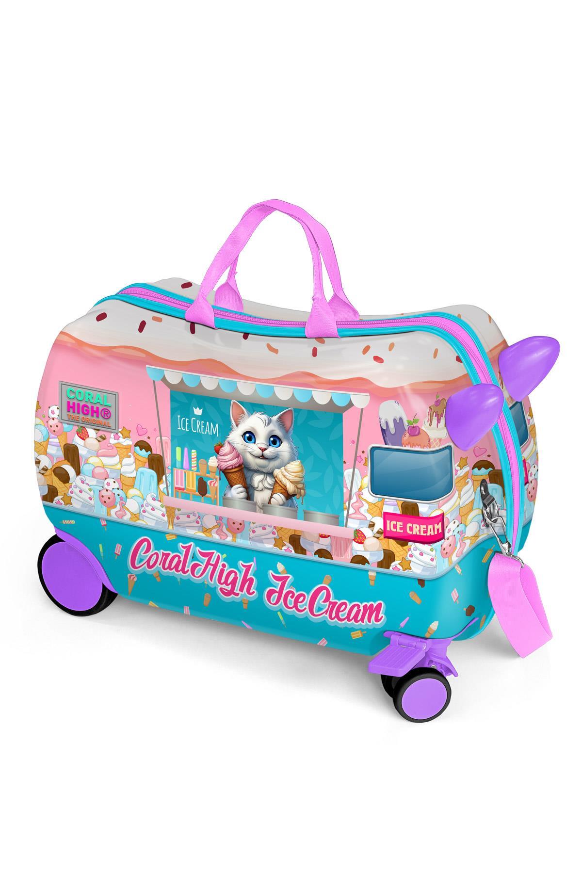 Coral High Kids Renkli Dondurmacı Kedi Desenli Otur-Çek Çocuk Valizi 16357