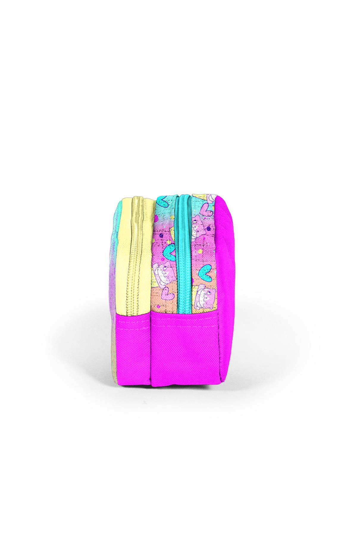 Coral High Kids Renkli Dondurmalı Kedi Desenli İki Bölmeli Kalem Çantası 12081
