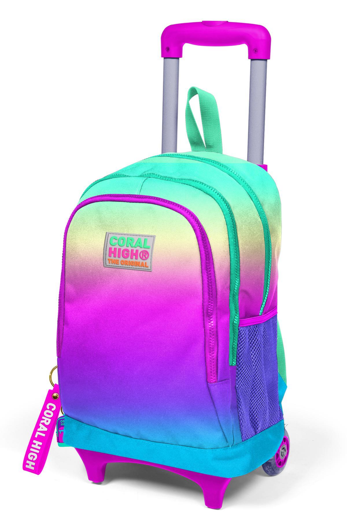 Coral High Kids Renk Geçişli Üç Bölmeli Tekerlekli Çekçekli Okul Sırt Çantası 23910
