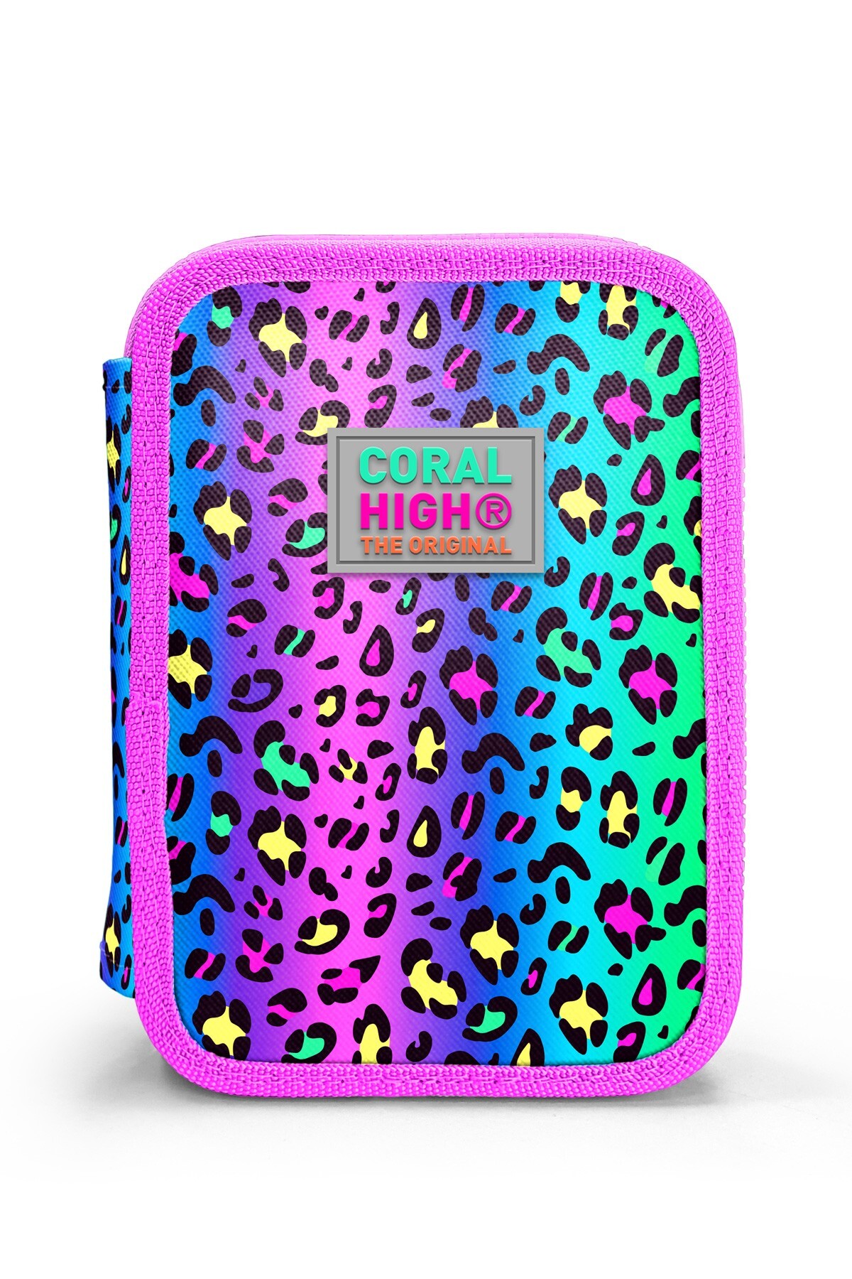 Coral High Kids Renkli Leopar Desenli Çift Katlı Kalem Çanta 11143