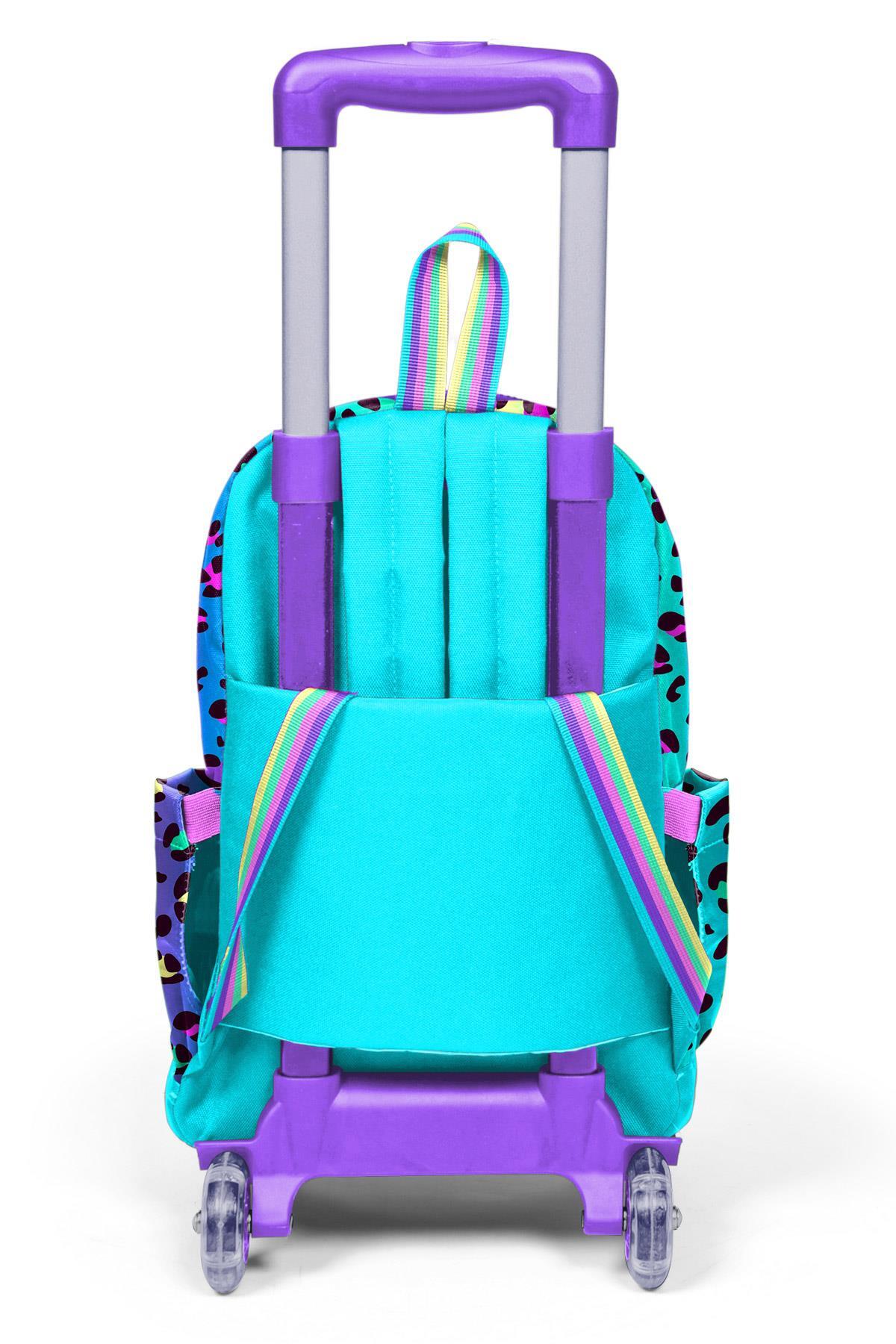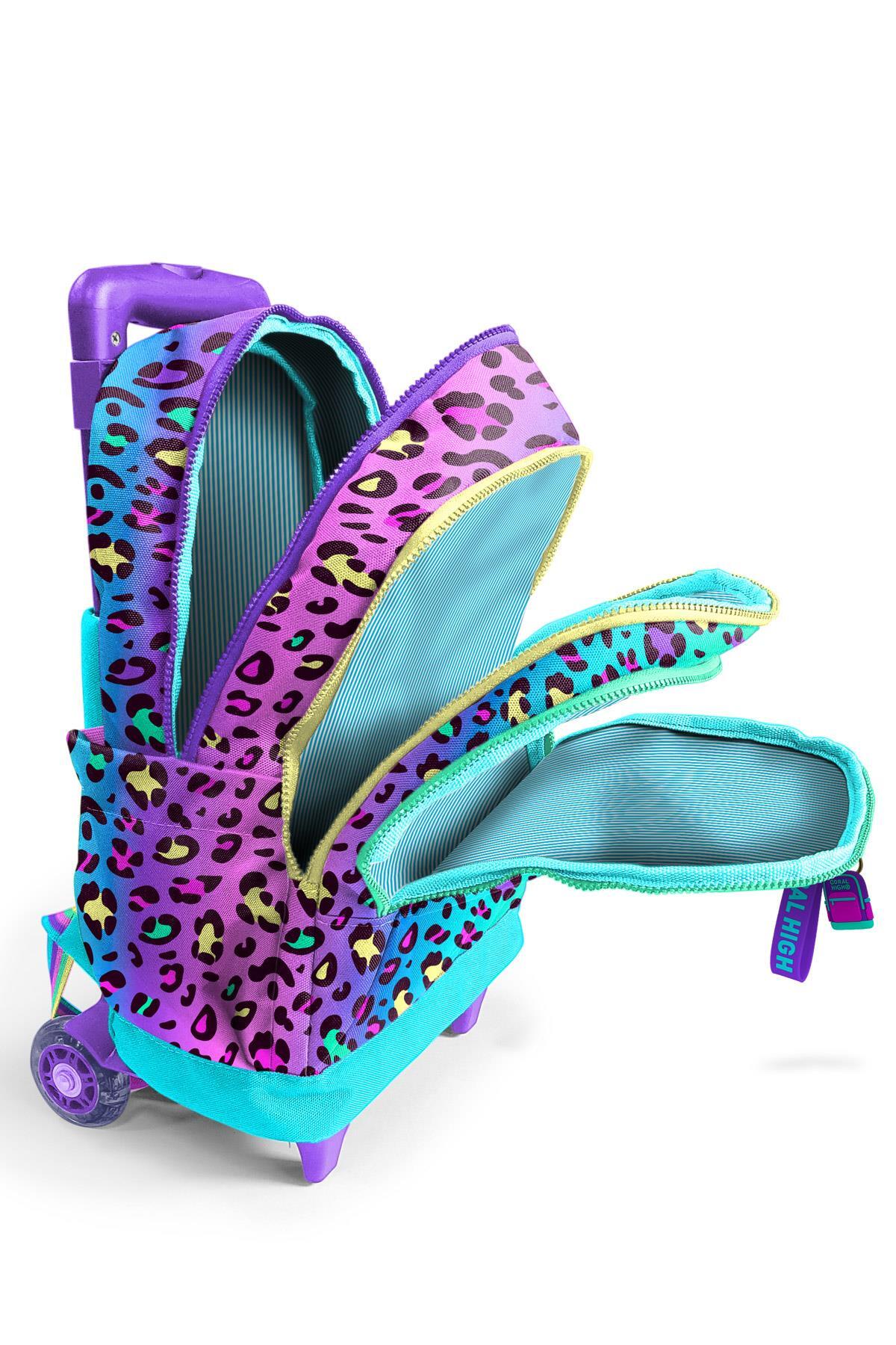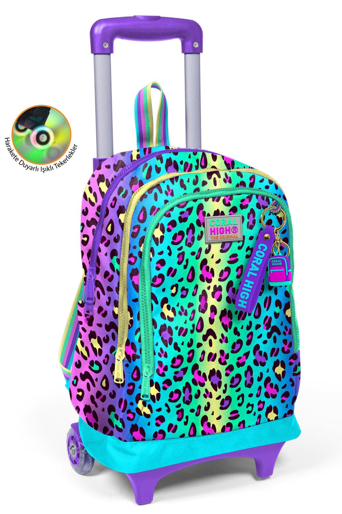 Coral High Kids Renkli Leopar Desenli Üç Bölmeli Çekçekli Okul Sırt Çantası 23969