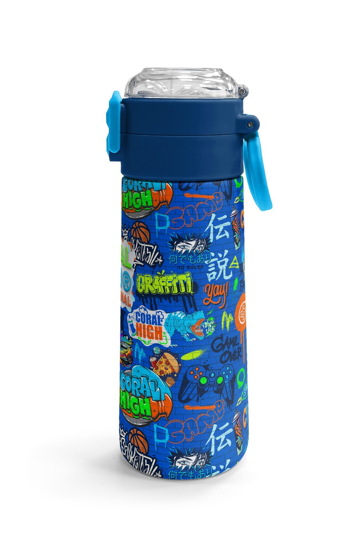 Coral High Kids Saks Grafiti Desenli Pipetli ve Direkt İçim Çelik Termos 500 ml 31968