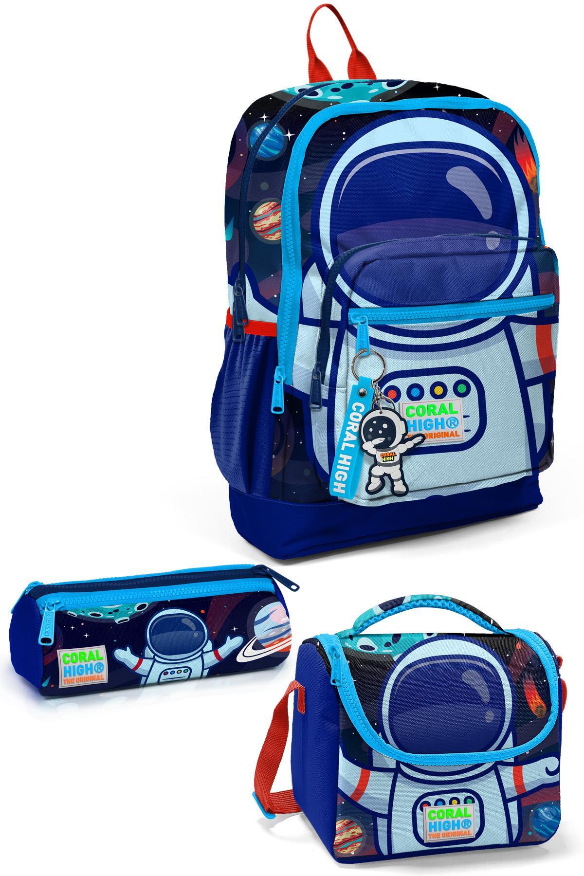 Coral High Kids Saks Mavi Astronot Desenli 3’lü Okul Çanta Seti SET0123724