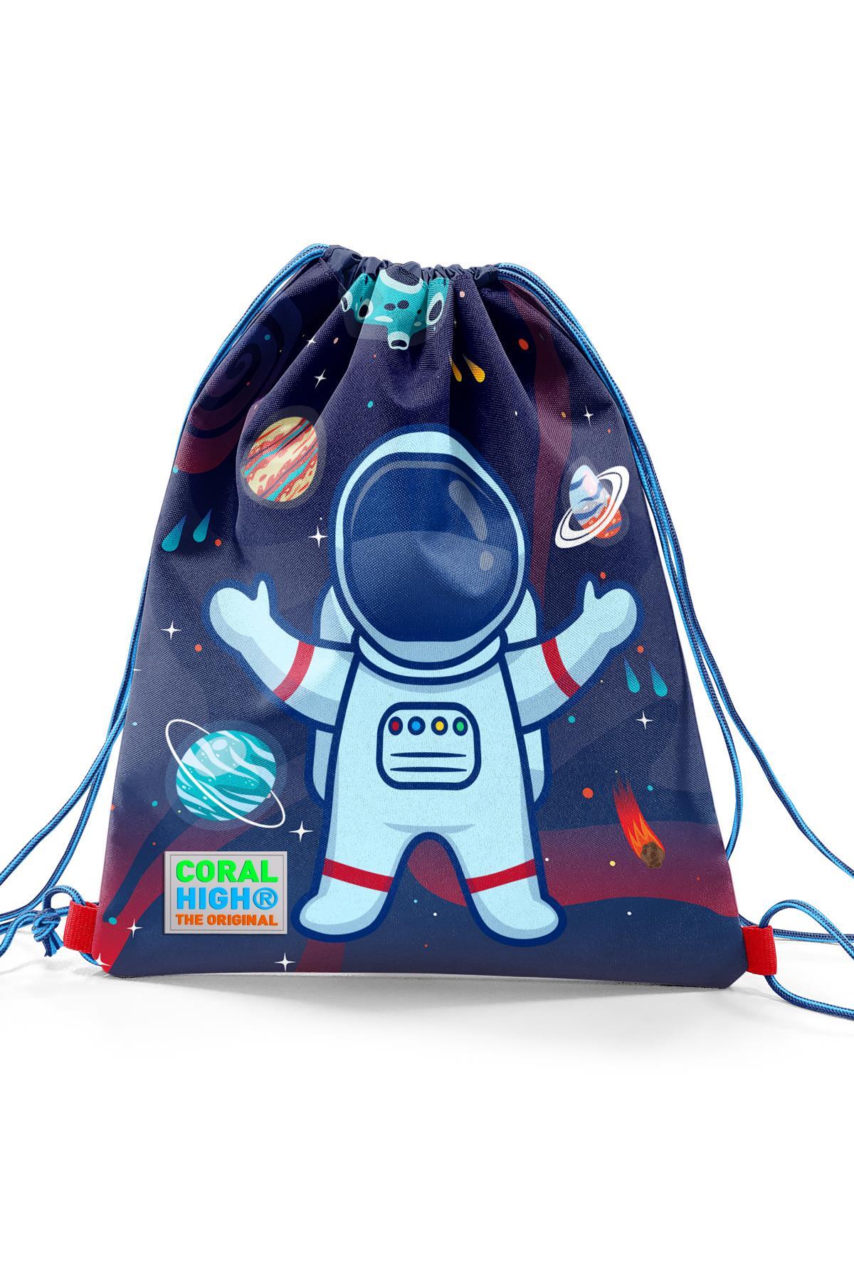 Coral High Kids Saks Mavi Astronot Desenli İpli Büzgülü Sırt Çantası 22474