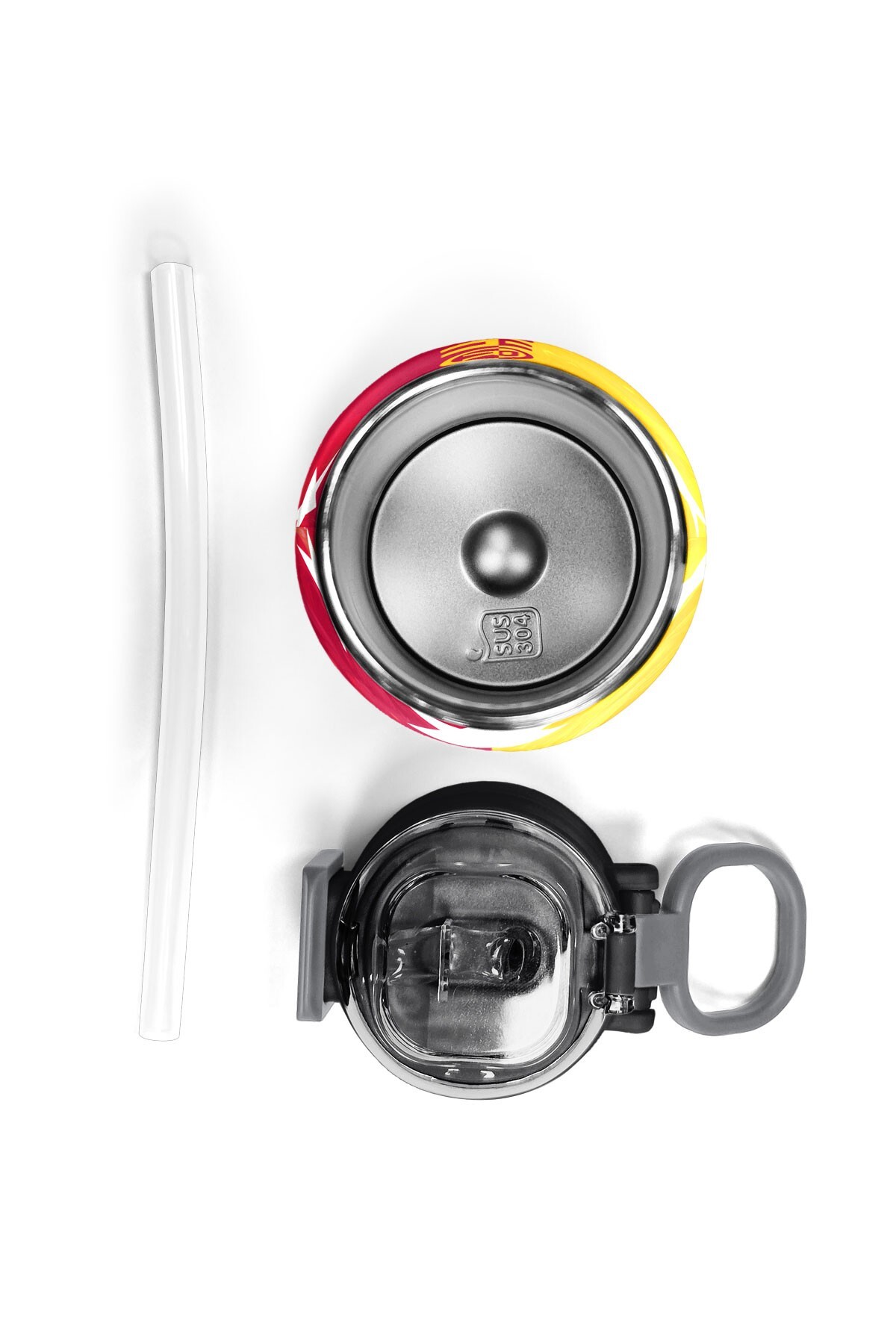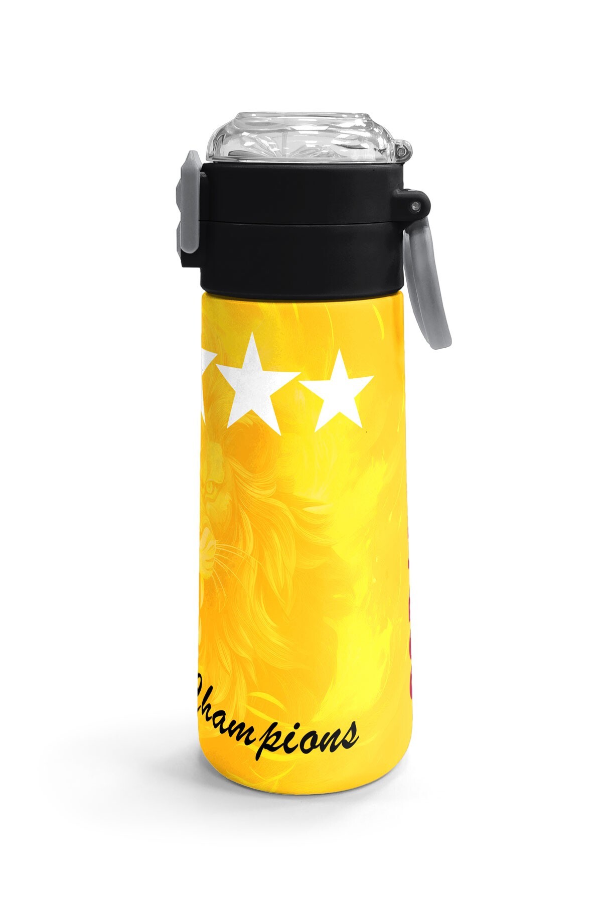 Coral High Kids Sarı Kırmızı 5 Yıldız Aslan Taraftar Desenli Pipetli ve Direkt İçim Çelik Termos 500 ml 31792