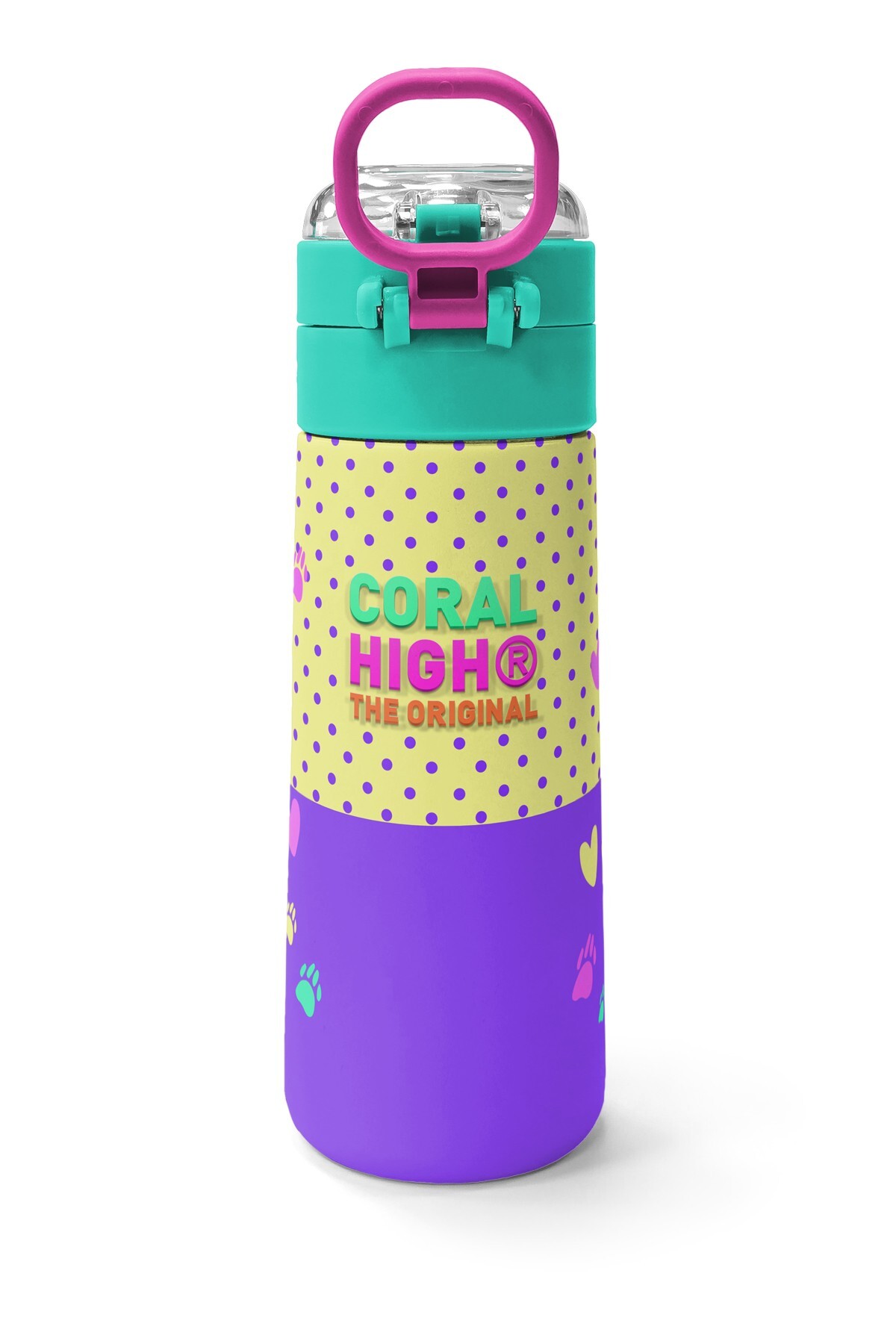 Coral High Kids Pembe Mor Fashion Girl Desenli Pipetli ve Direkt İçim Çelik Termos 500 ml 31956