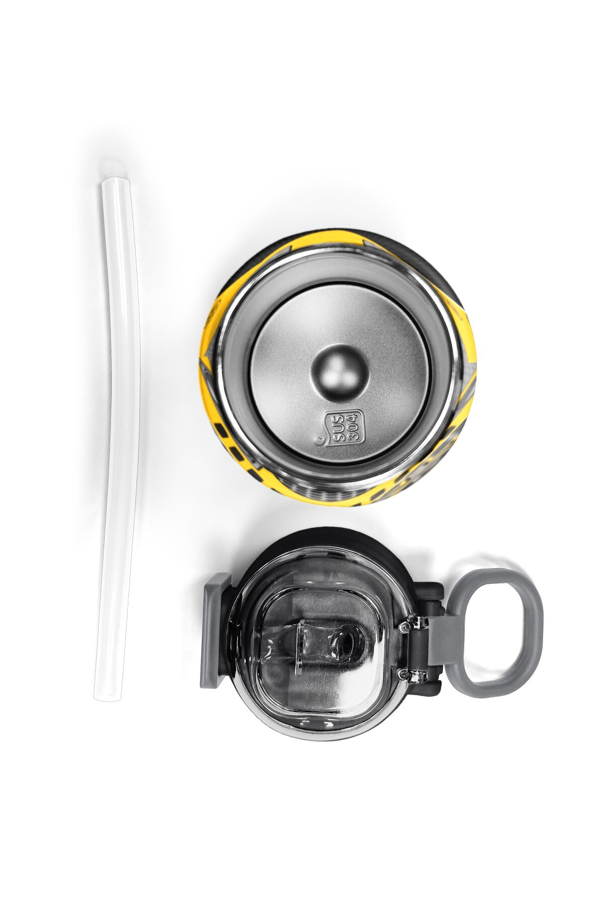 Coral High Kids Sarı Siyah Robot Desenli Pipetli ve Direkt İçim Çelik Termos 500 ml 31862