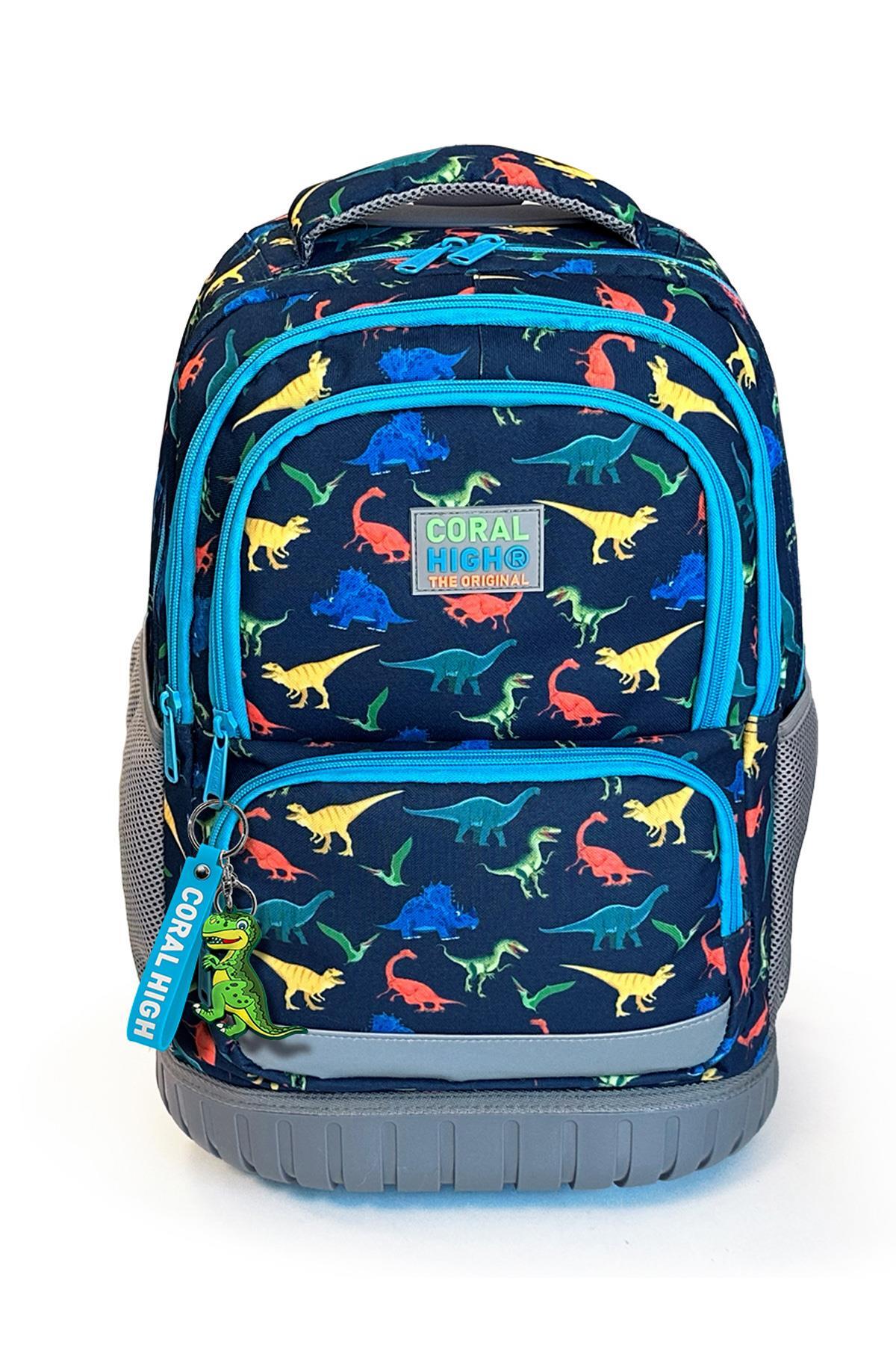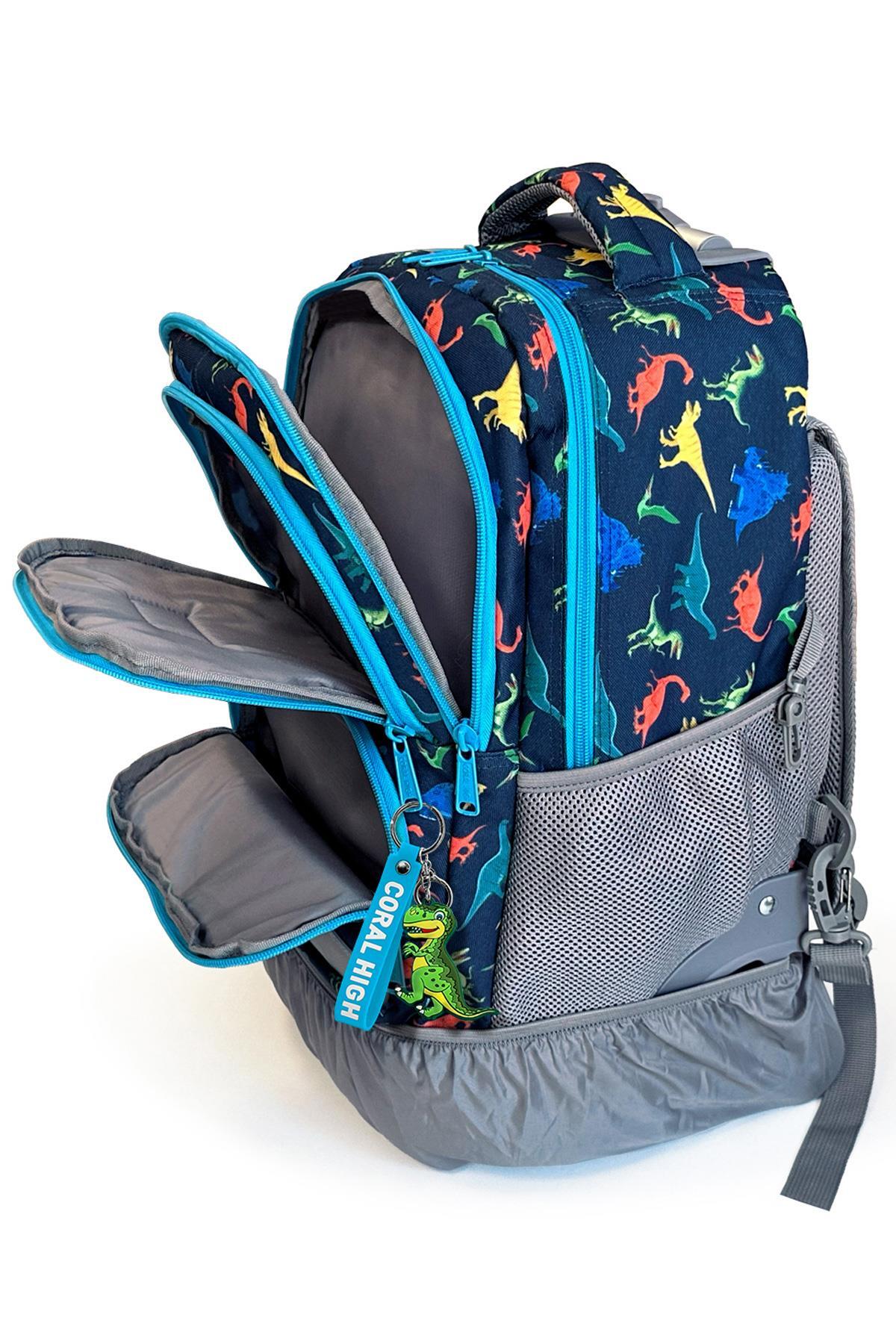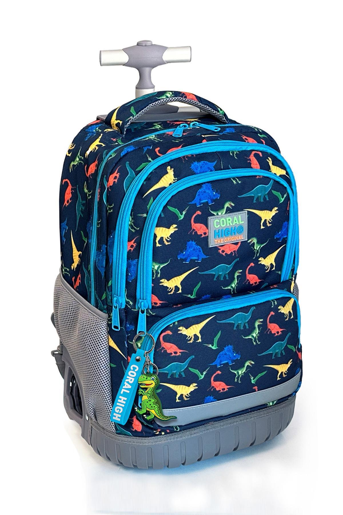 Coral High Kids Dinozor Desenli, Lacivert Renkli, İki Kademeli Çekçekli, Sırt Ve Okul Çantası 24024