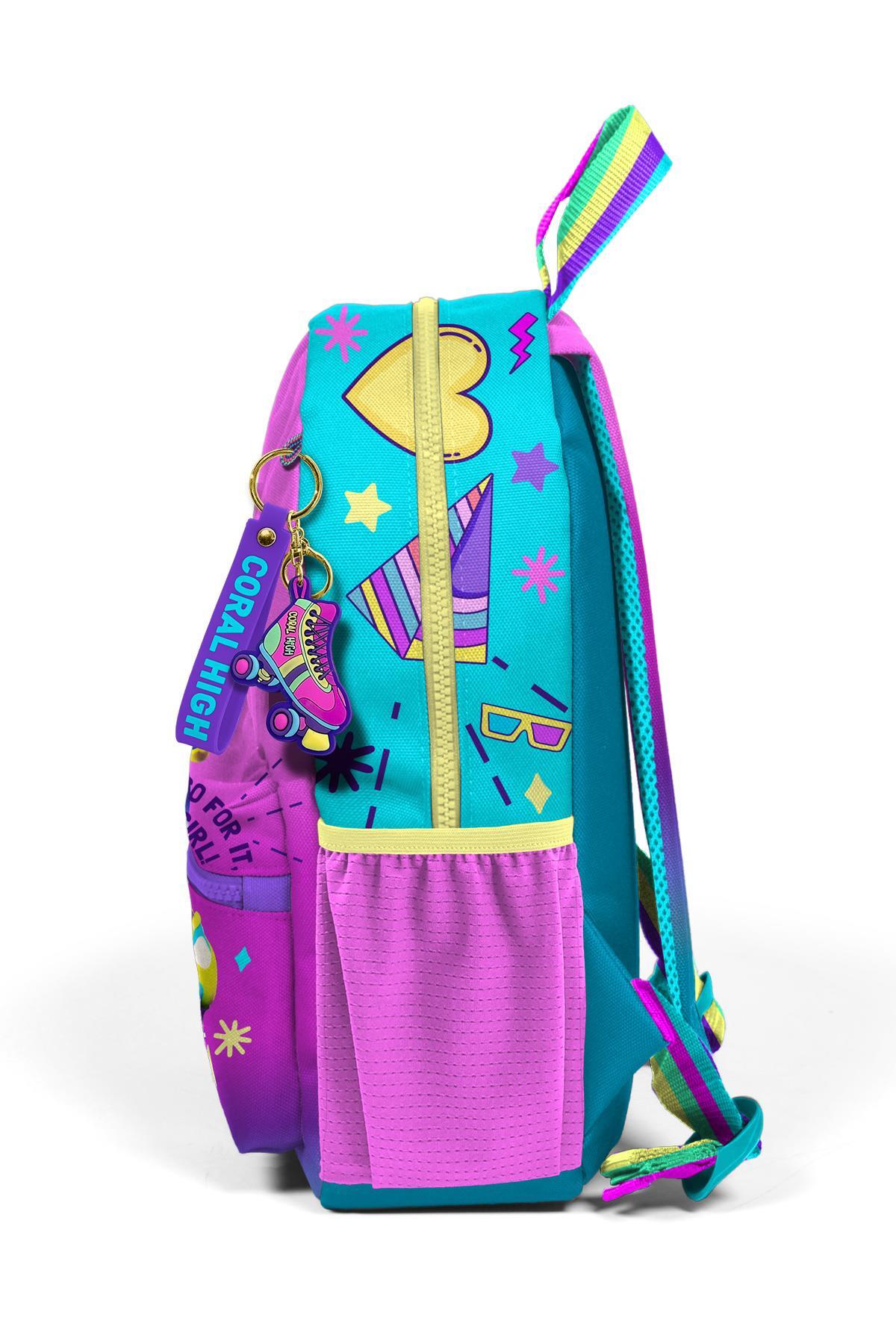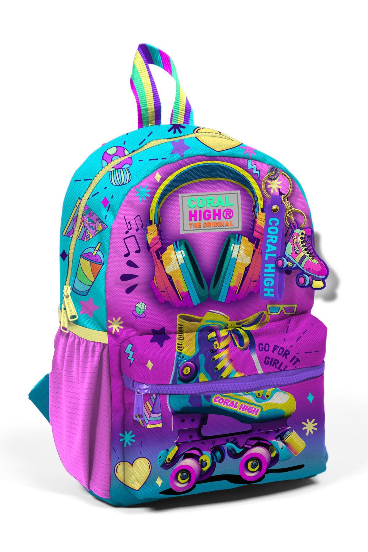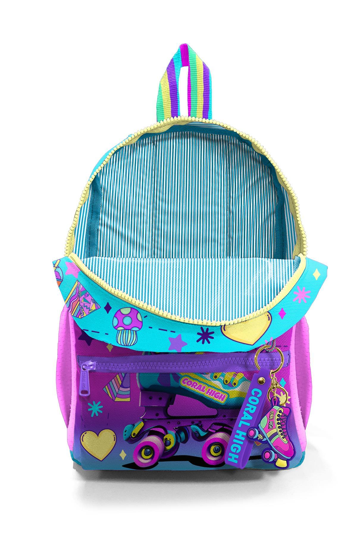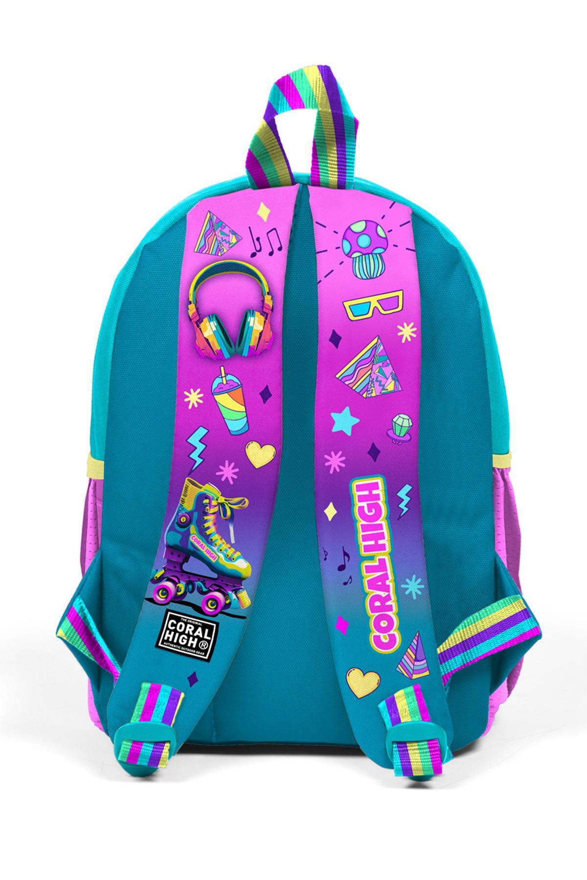 Minik Yuva Sırt Çantası Pembe Turkuaz Kulaklık Paten Desenli İki Bölmeli 23554