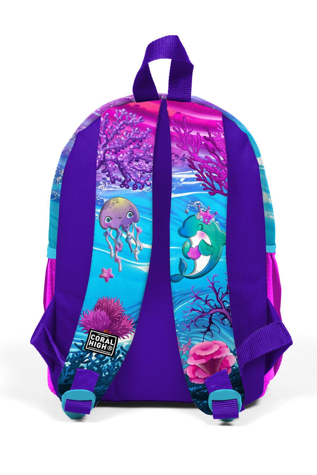 Minik Yuva Sırt Çantası Pembe Mor Kaplumbağa Desenli İki Bölmeli 23556