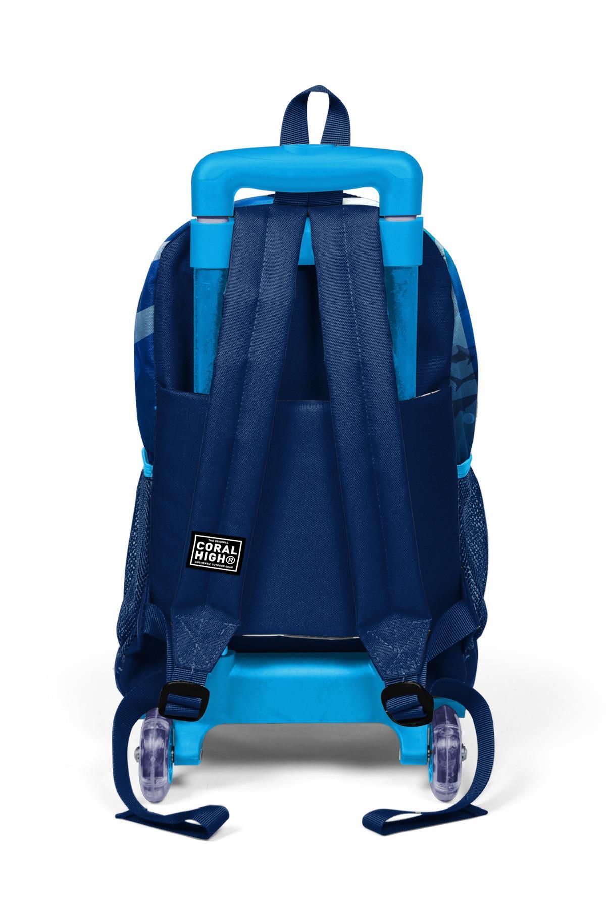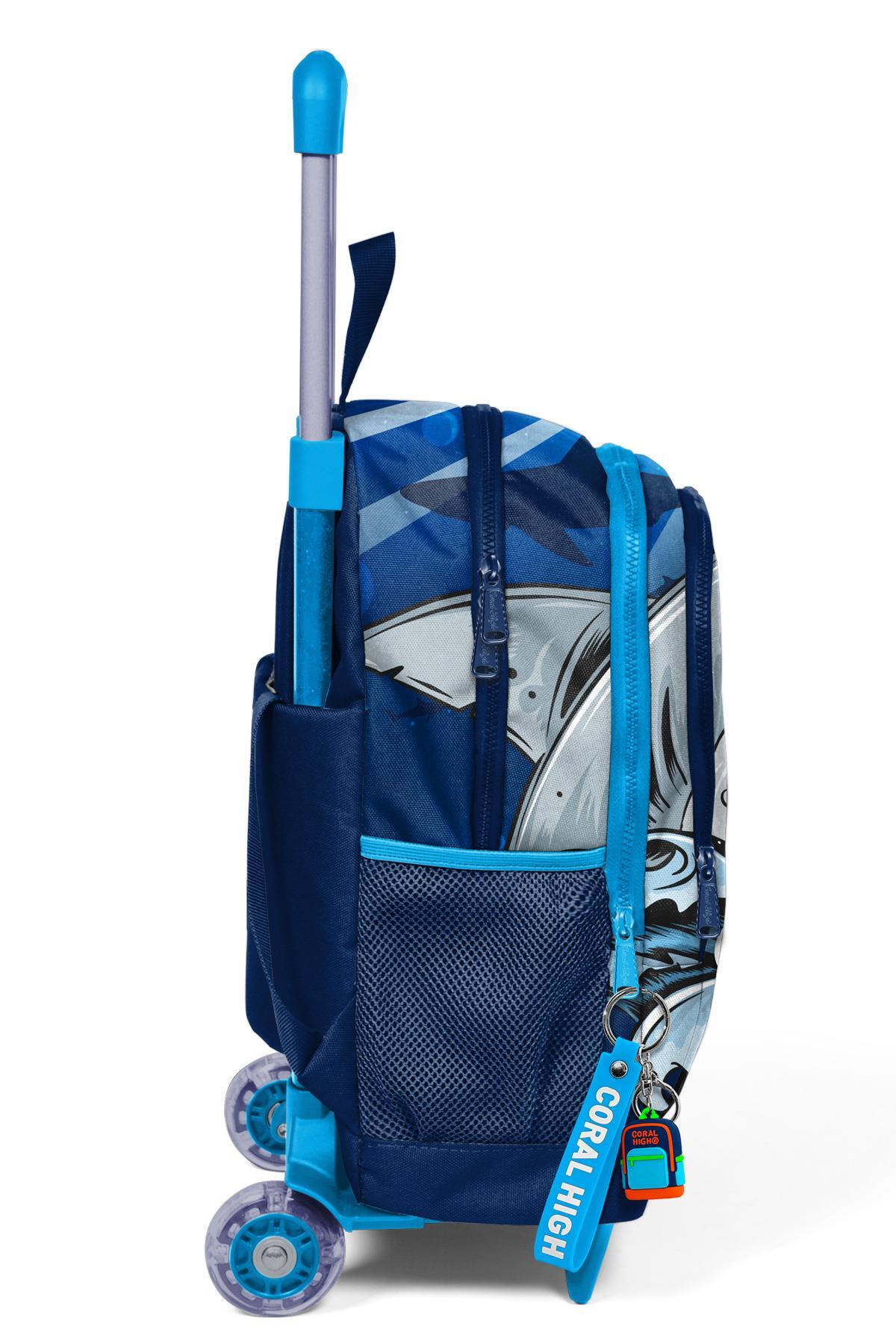 Coral High Kids Lacivert Mavi Köpek Balığı Desenli Üç Bölmeli Çekçekli Okul Sırt Çantası 23922