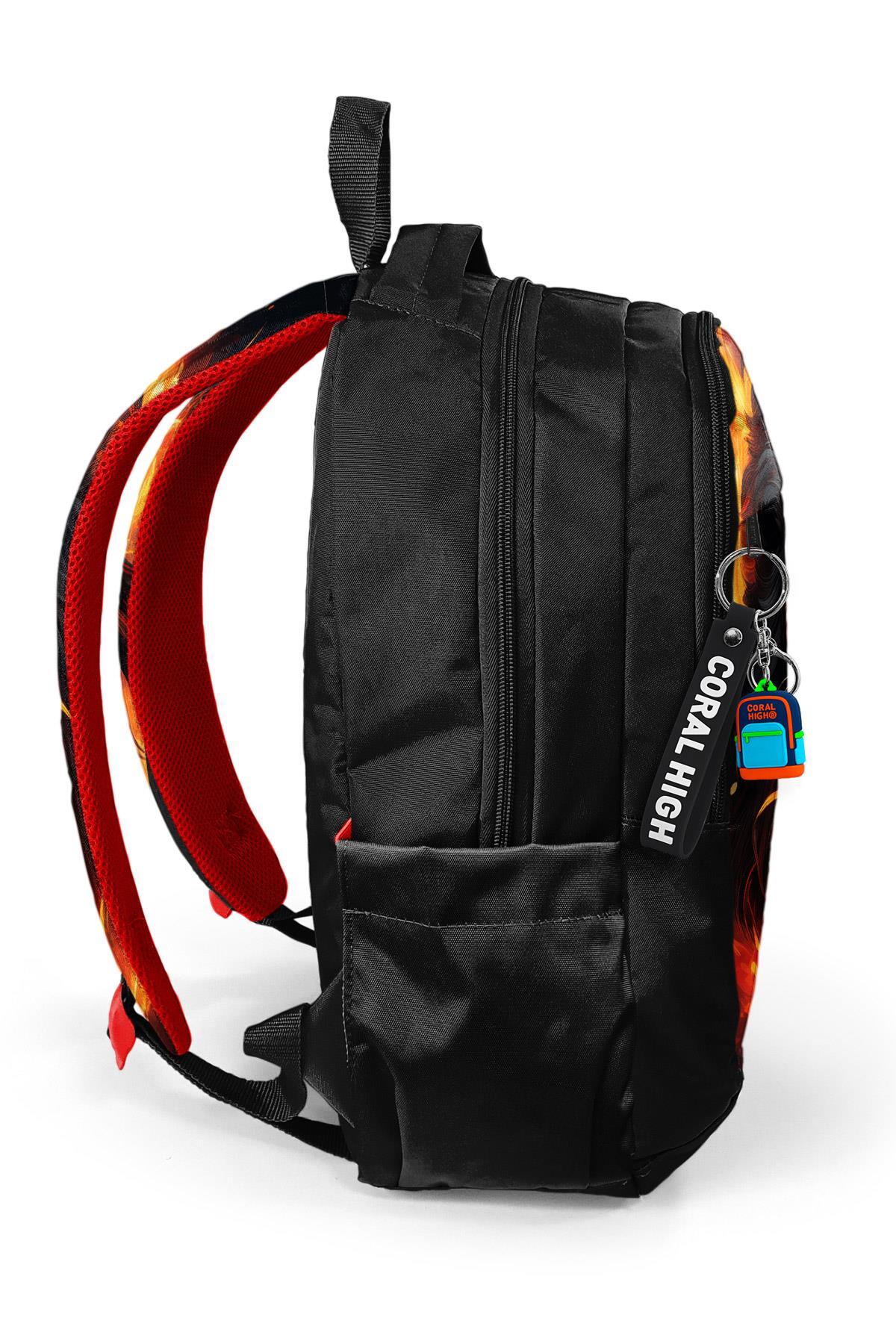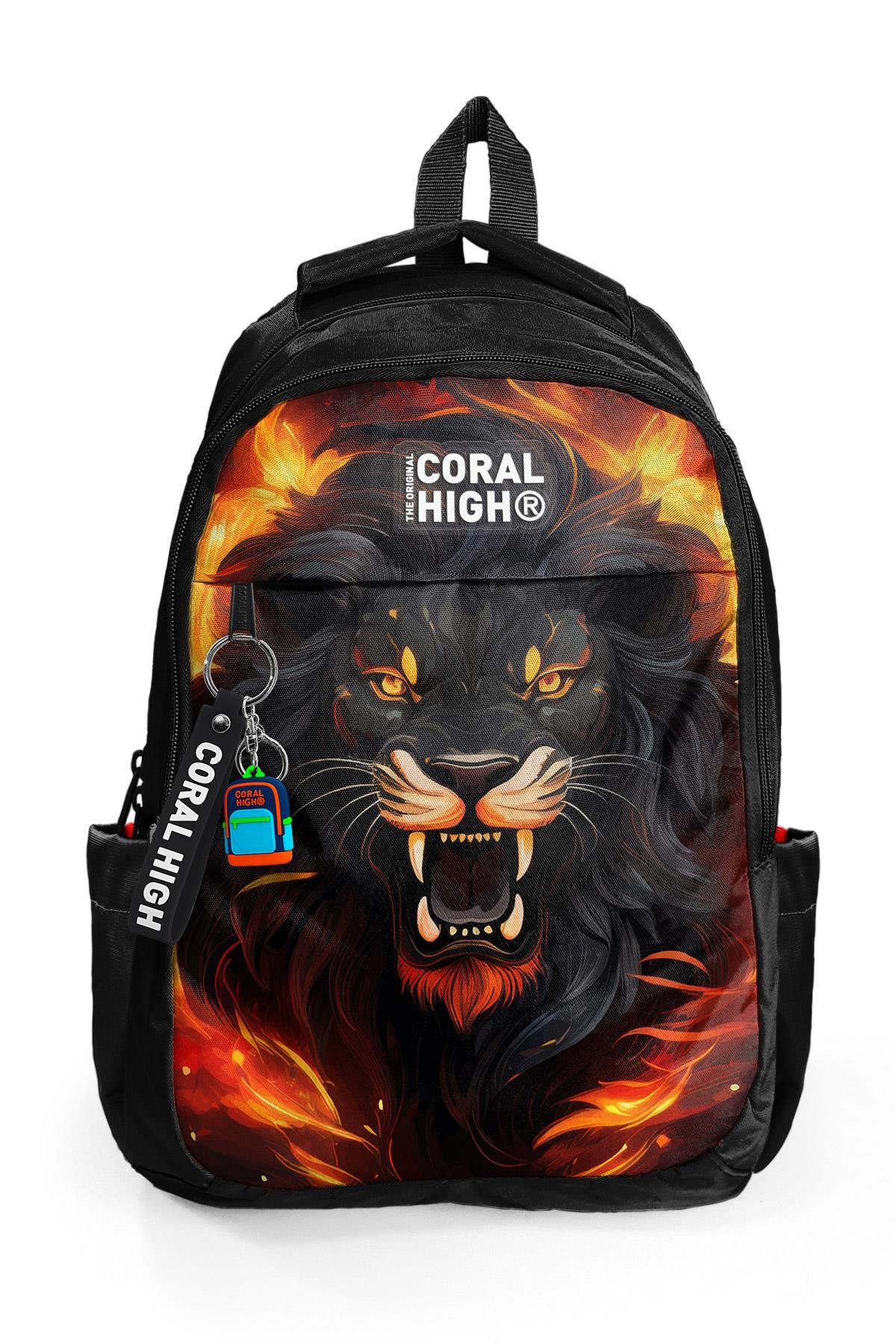 Coral High Kids Siyah Aslan Desenli Üç Bölmeli Okul Sırt Çantası 23671