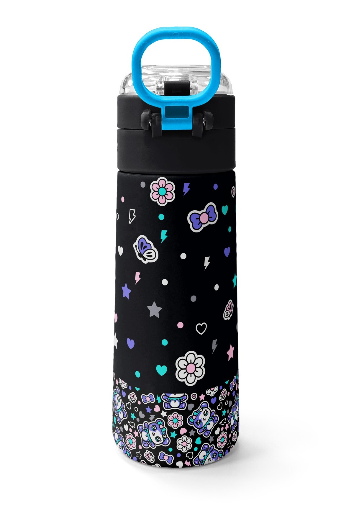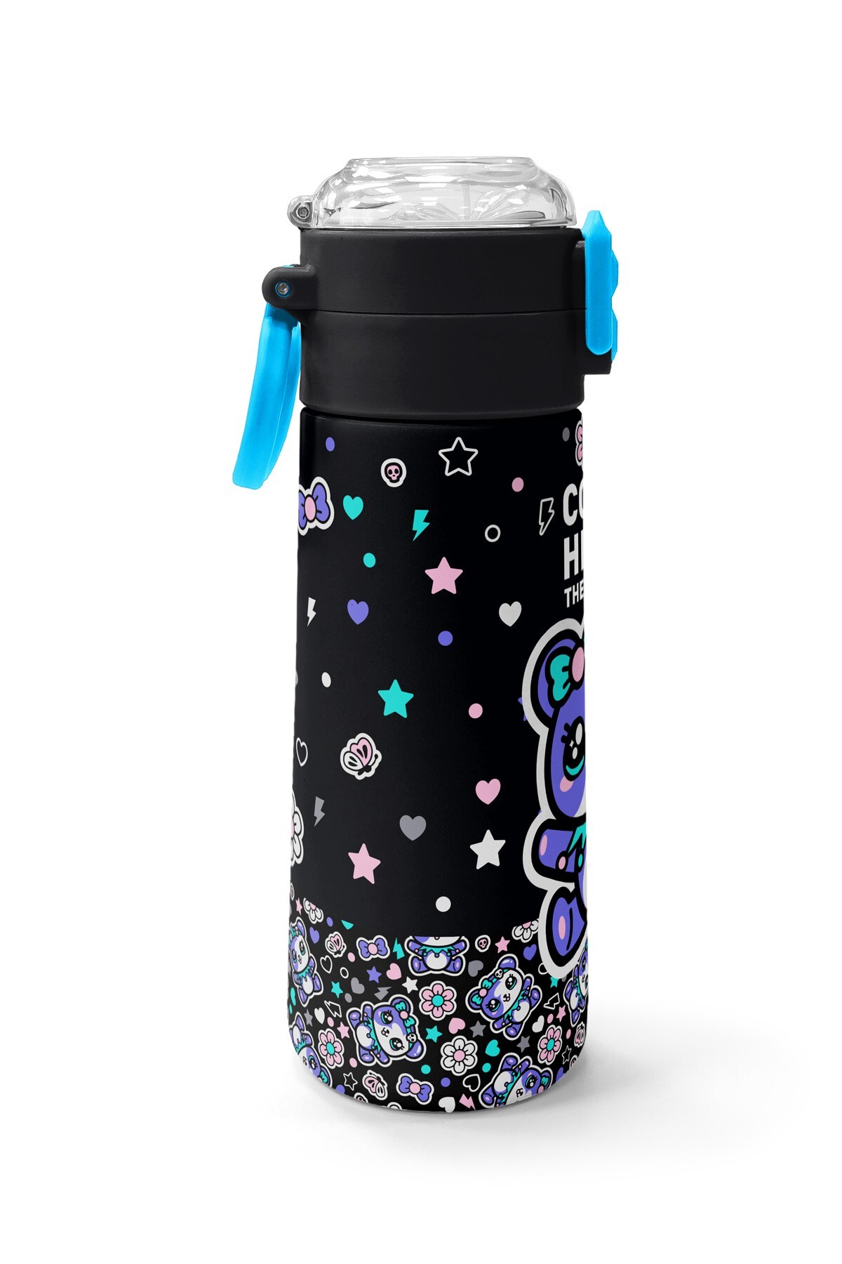 Coral High Kids Siyah Ayıcık Desenli Pipetli ve Direkt İçim Çelik Termos 500 ml 38124