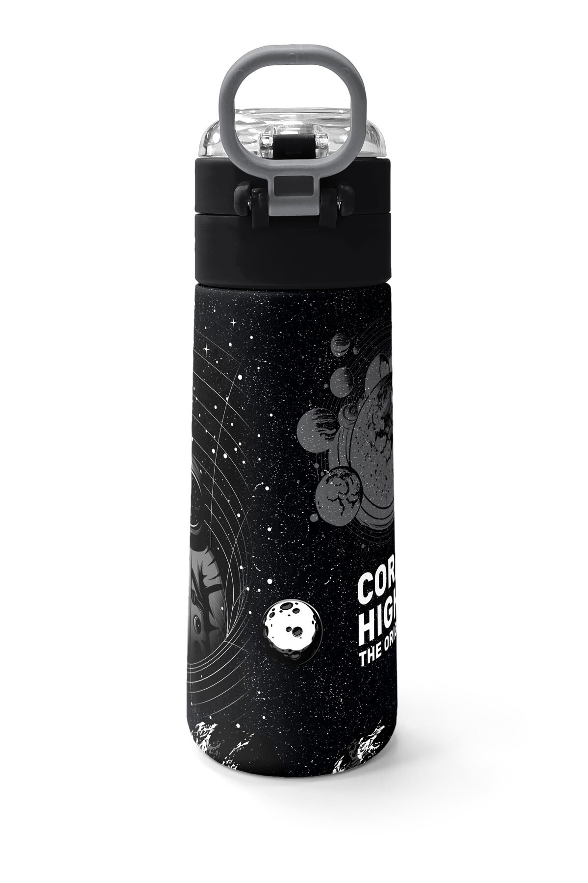 Coral High Kids Siyah Basketbol Desenli Pipetli ve Direkt İçim Çelik Termos 500 ml 31857