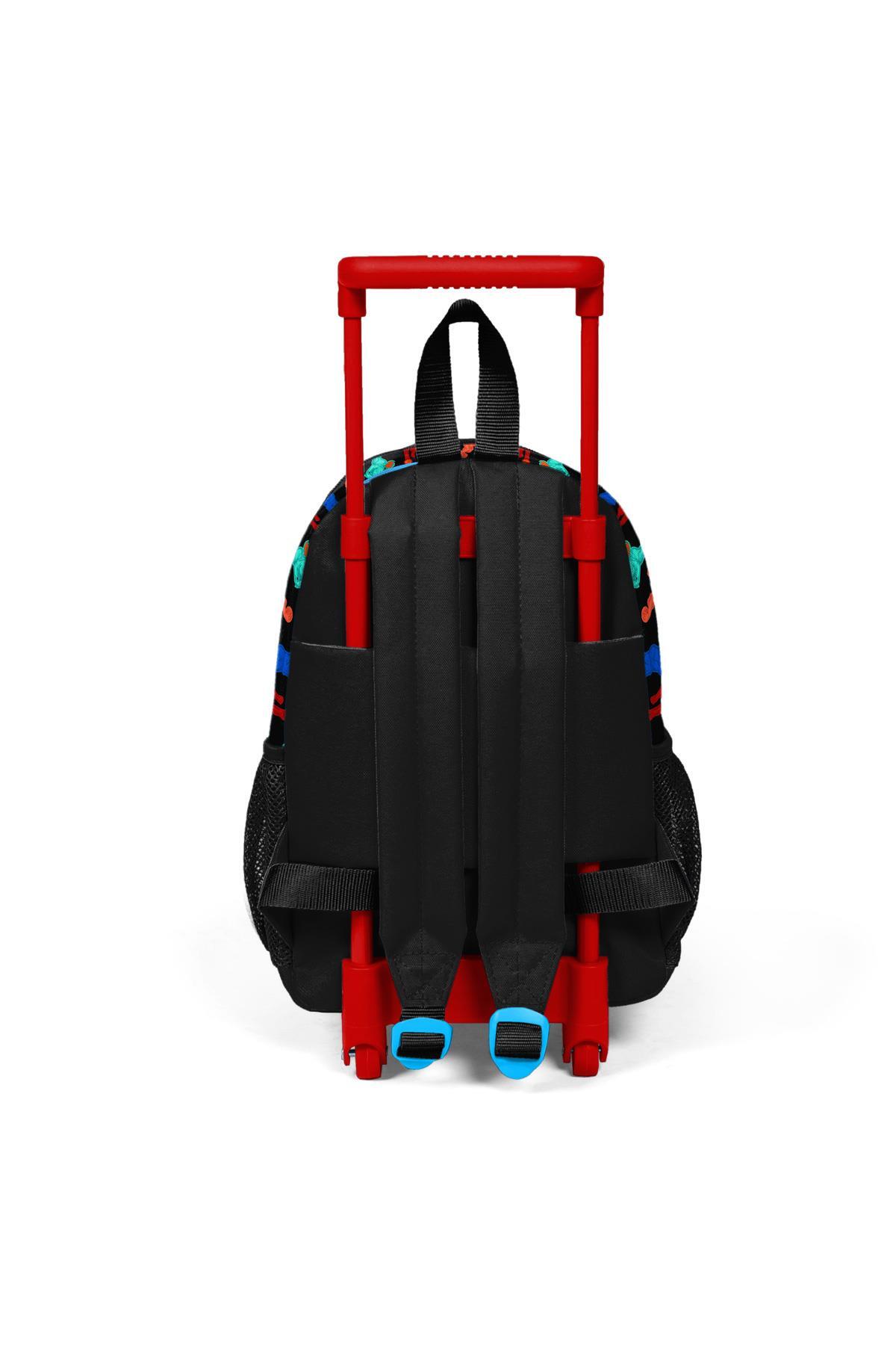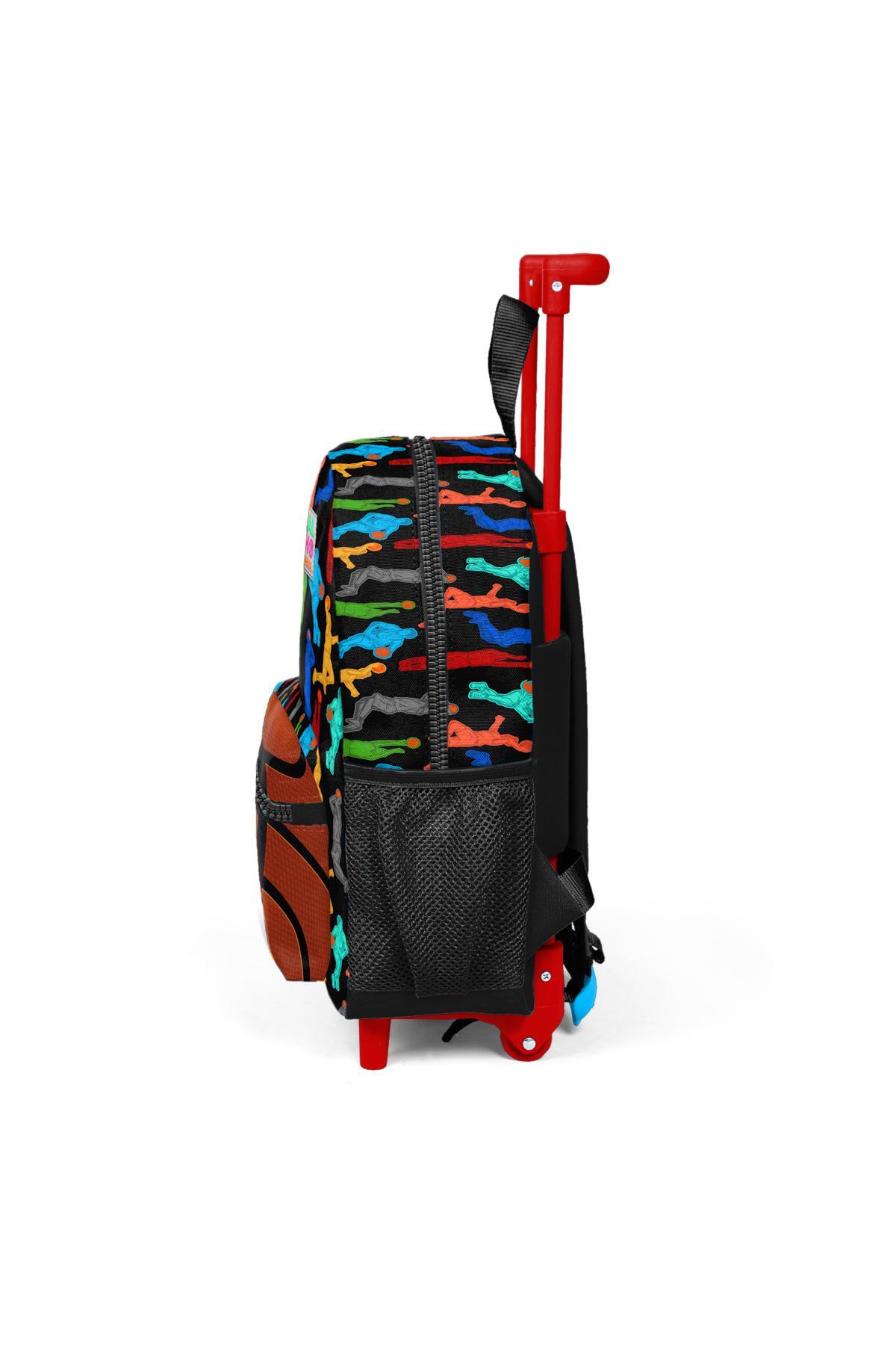 Minik Yuva Çekçekli Sırt Çantası Siyah Basketbol Desenli İki Bölmeli 24011