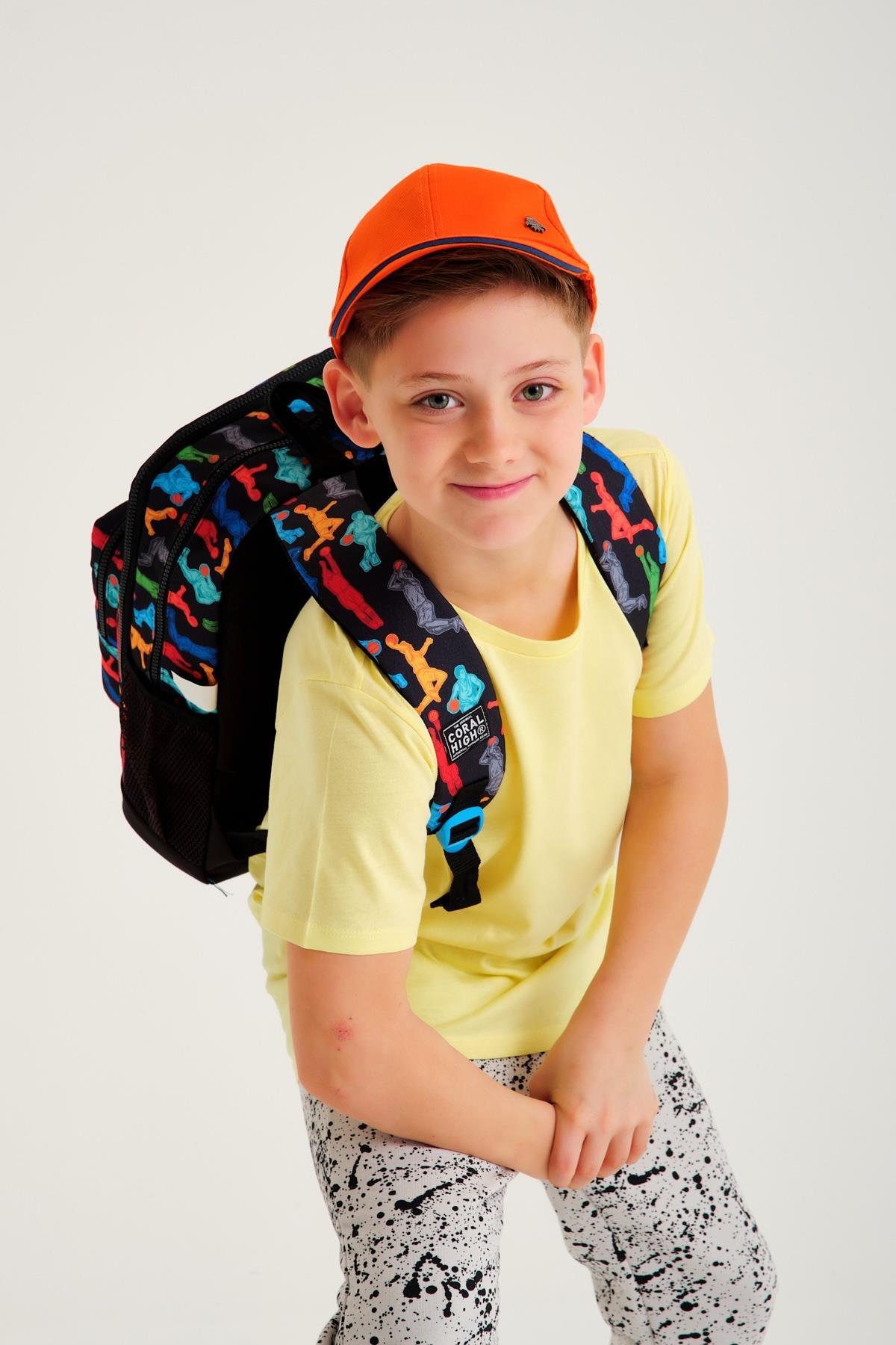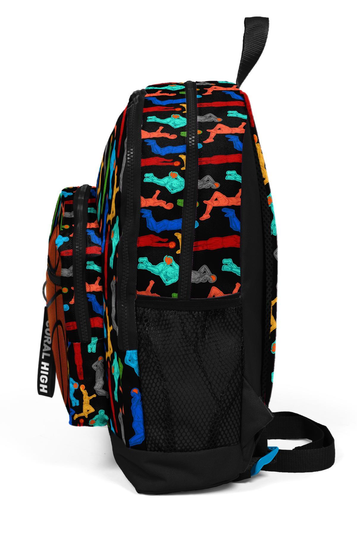Coral High Kids Siyah Basketbol Desenli Dört Bölmeli Okul Sırt Çantası 23471