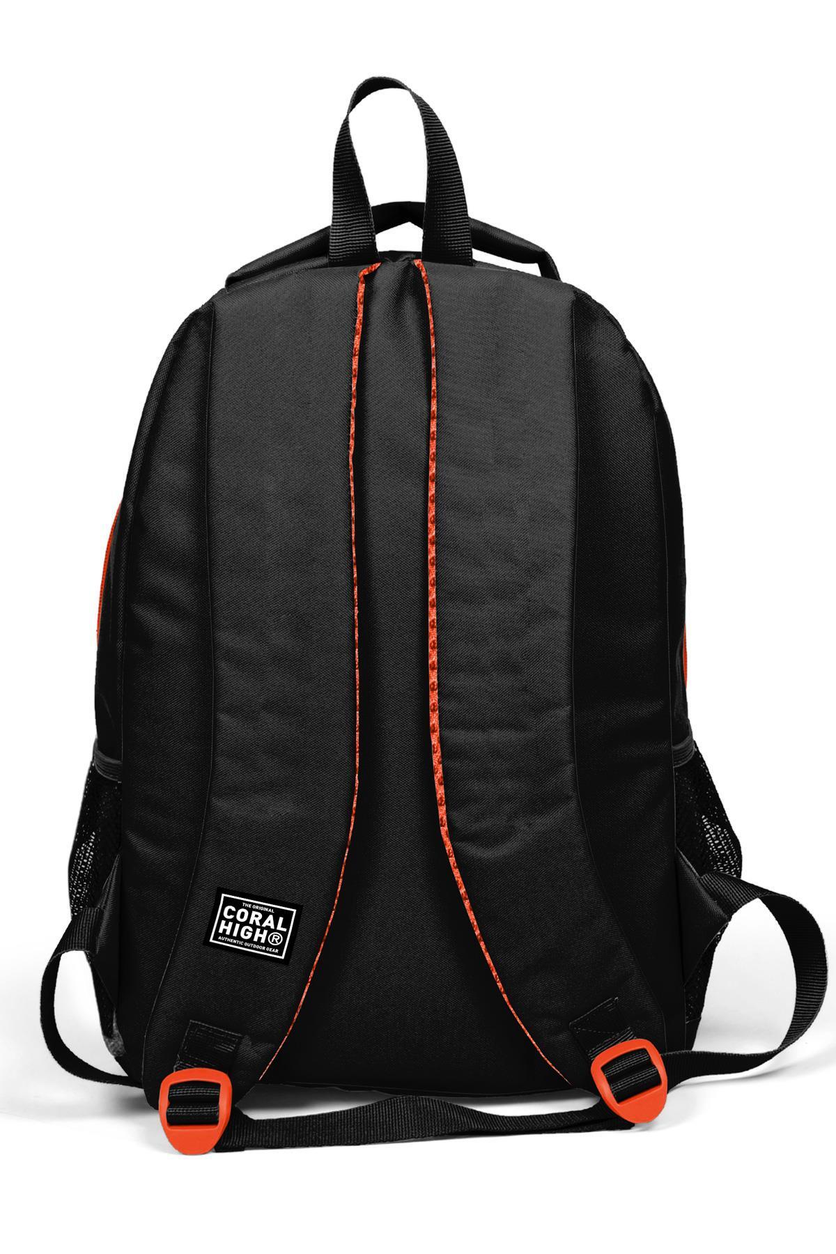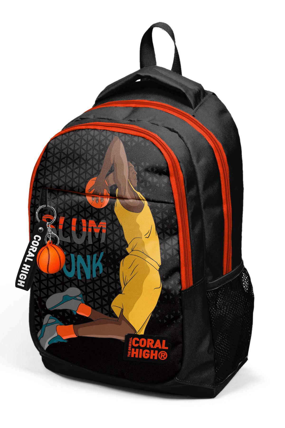 Coral High Kids Siyah Turuncu Basketbol Desenli Üç Bölmeli Okul Sırt Çantası 14385