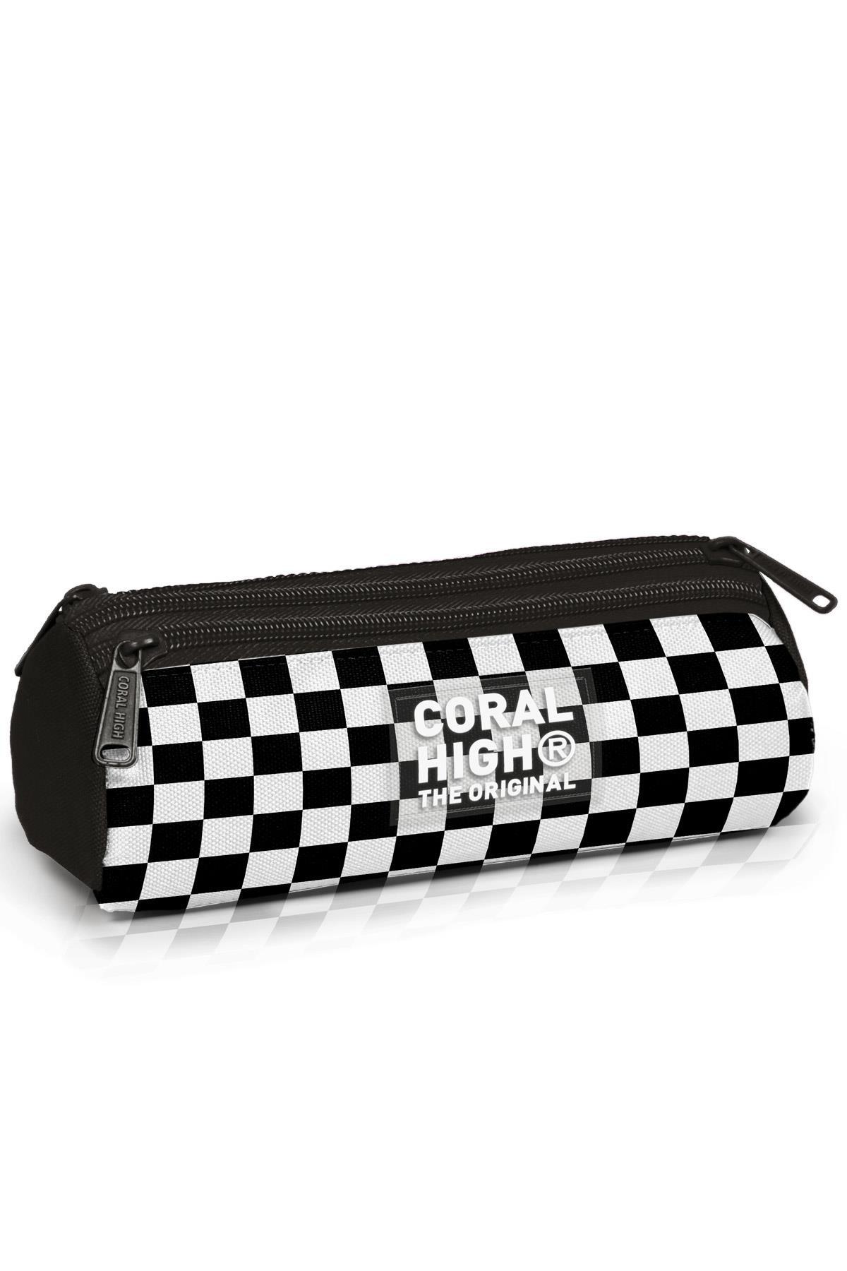 Coral High Kids Siyah Beyaz Dama Desenli Üç Bölmeli Kalem Çantası 11177