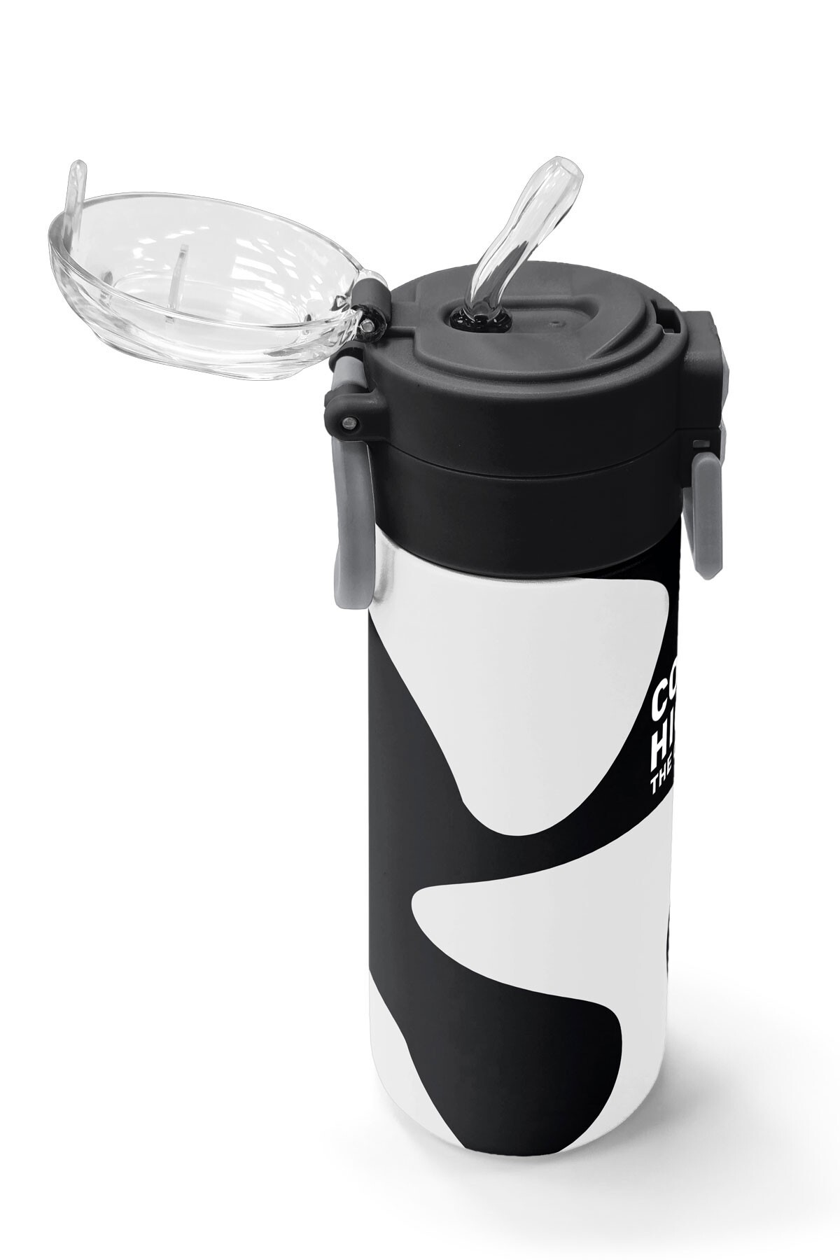 Coral High Kids Siyah Beyaz Desenli Pipetli ve Direkt İçim Çelik Termos 500 ml 31887