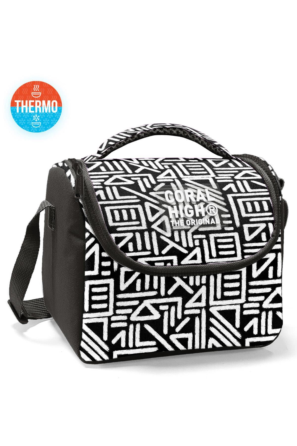 Coral High Kids Siyah Beyaz Geometrik Desenli Thermo Beslenme Çantası 22782