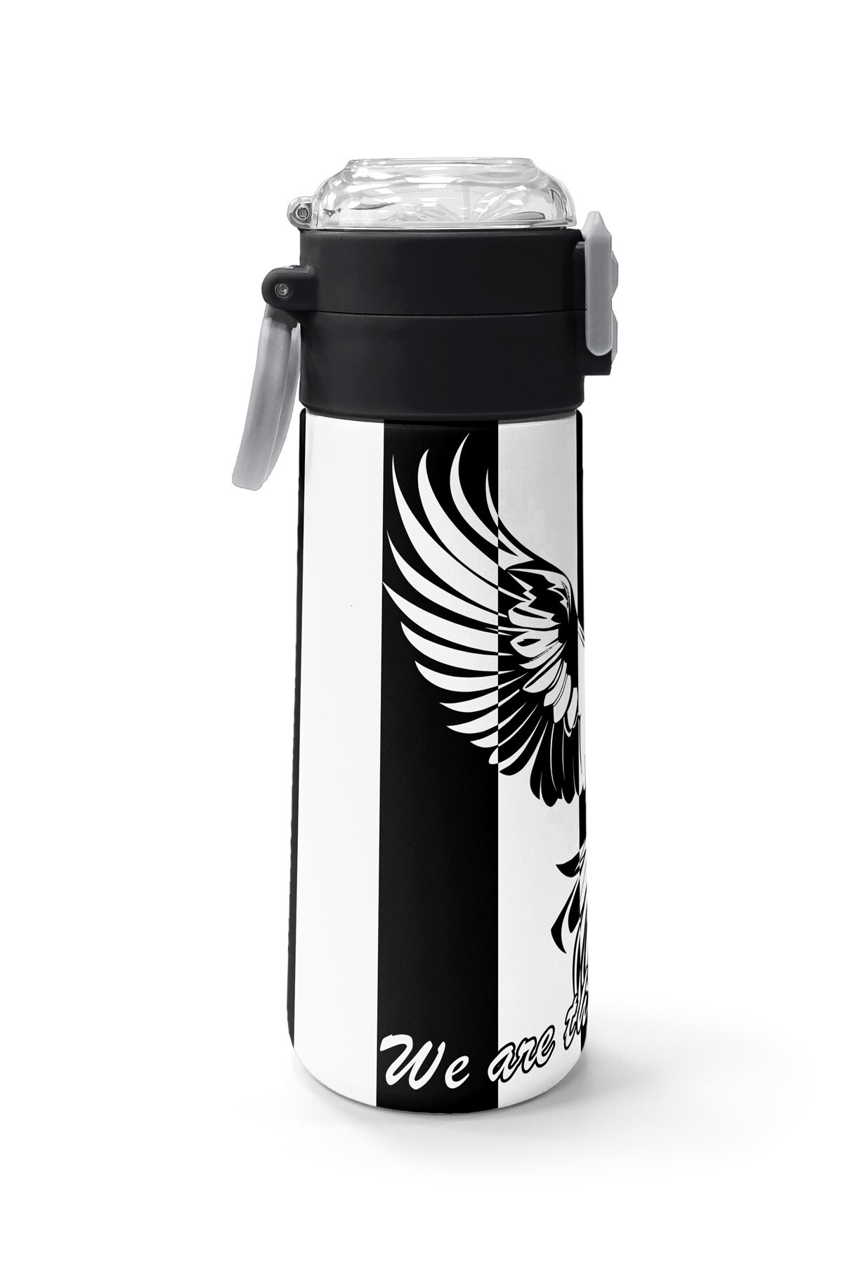 Coral High Kids Siyah Beyaz Kartal Taraftar Desenli Pipetli ve Direkt İçim Çelik Termos 500 ml 31789