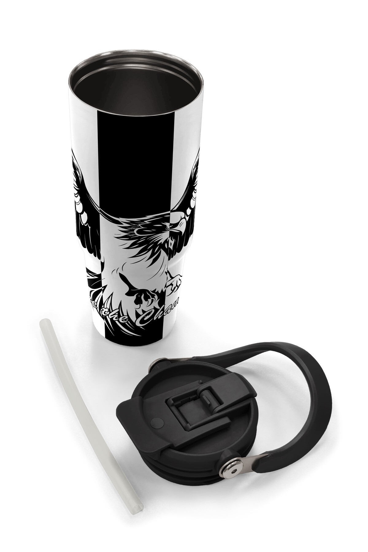 Coral High Kids Siyah Beyaz Kartal Taraftar Desenli Pipetli ve Direkt İçim Çelik Termos 900 ml 38732