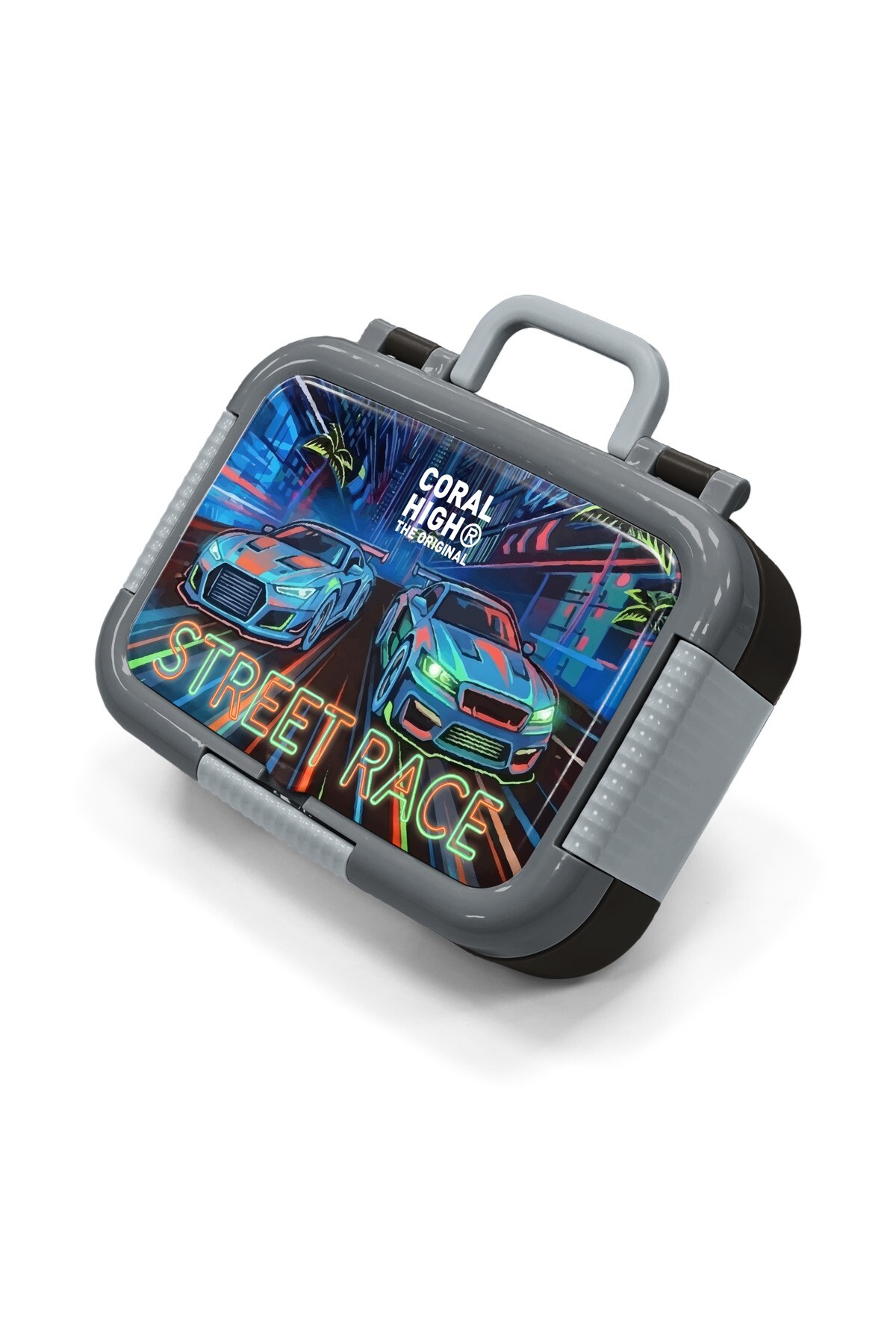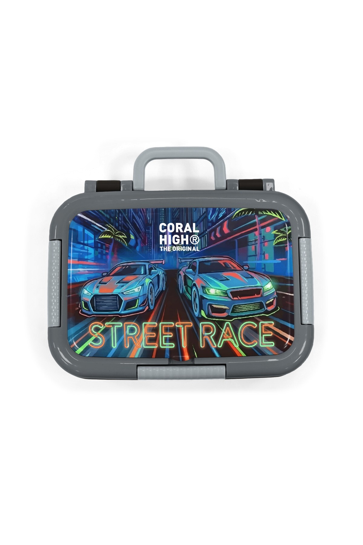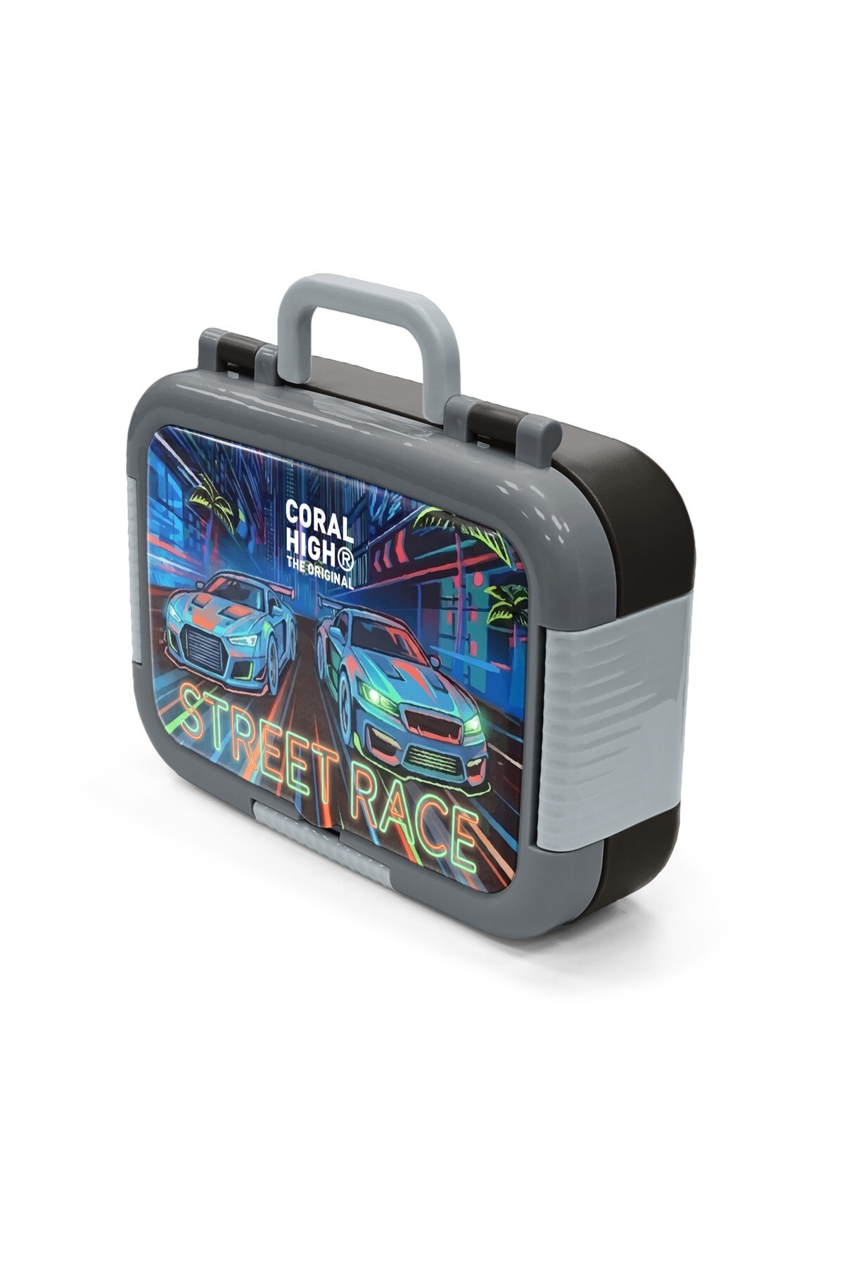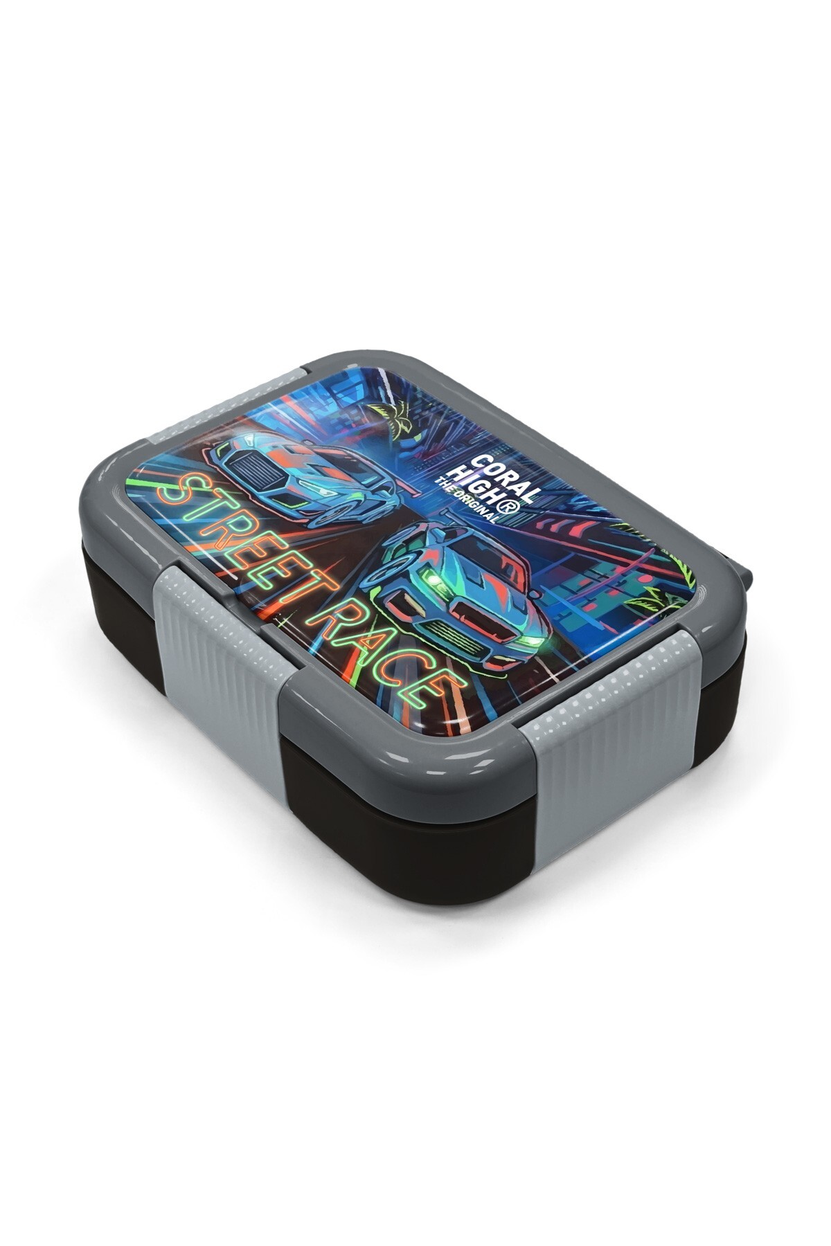 Coral High Kids Siyah Çok Renkli Yarış Arabası Desenli Paslanmaz Çelik Beslenme Kabı 39159