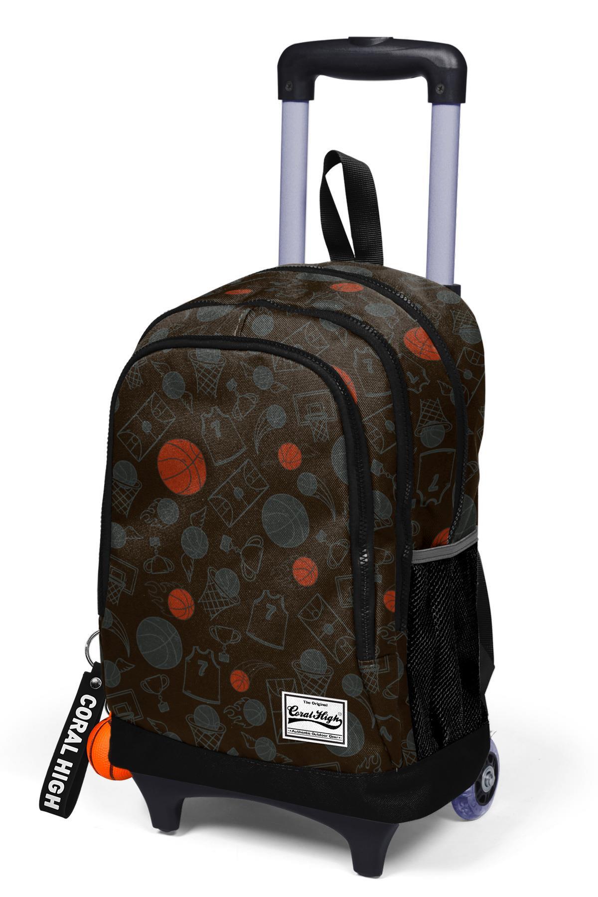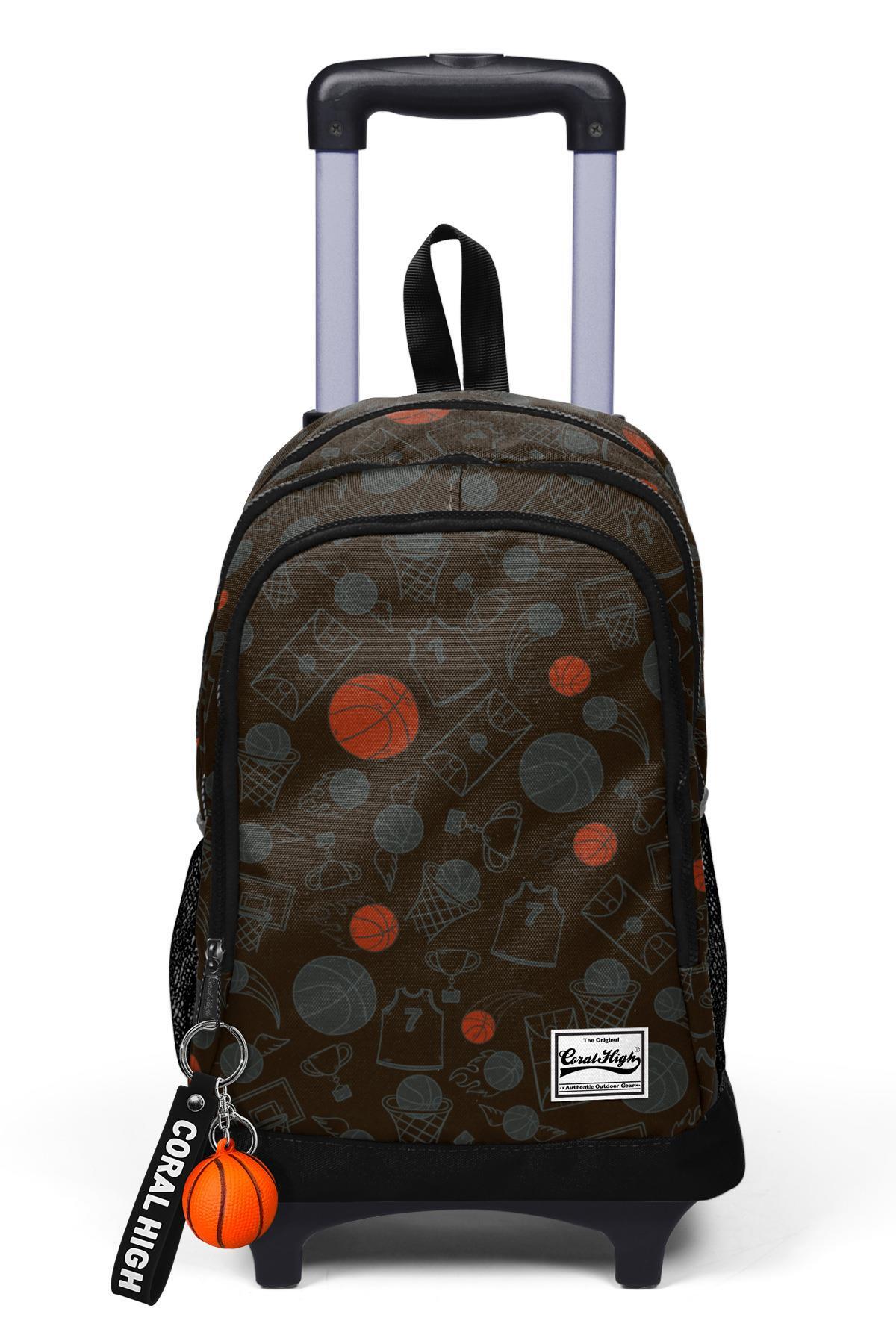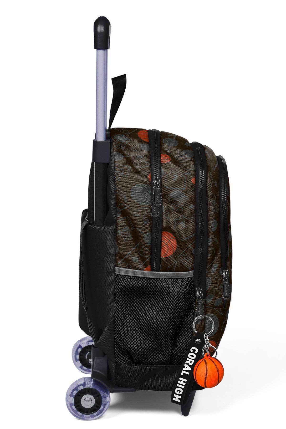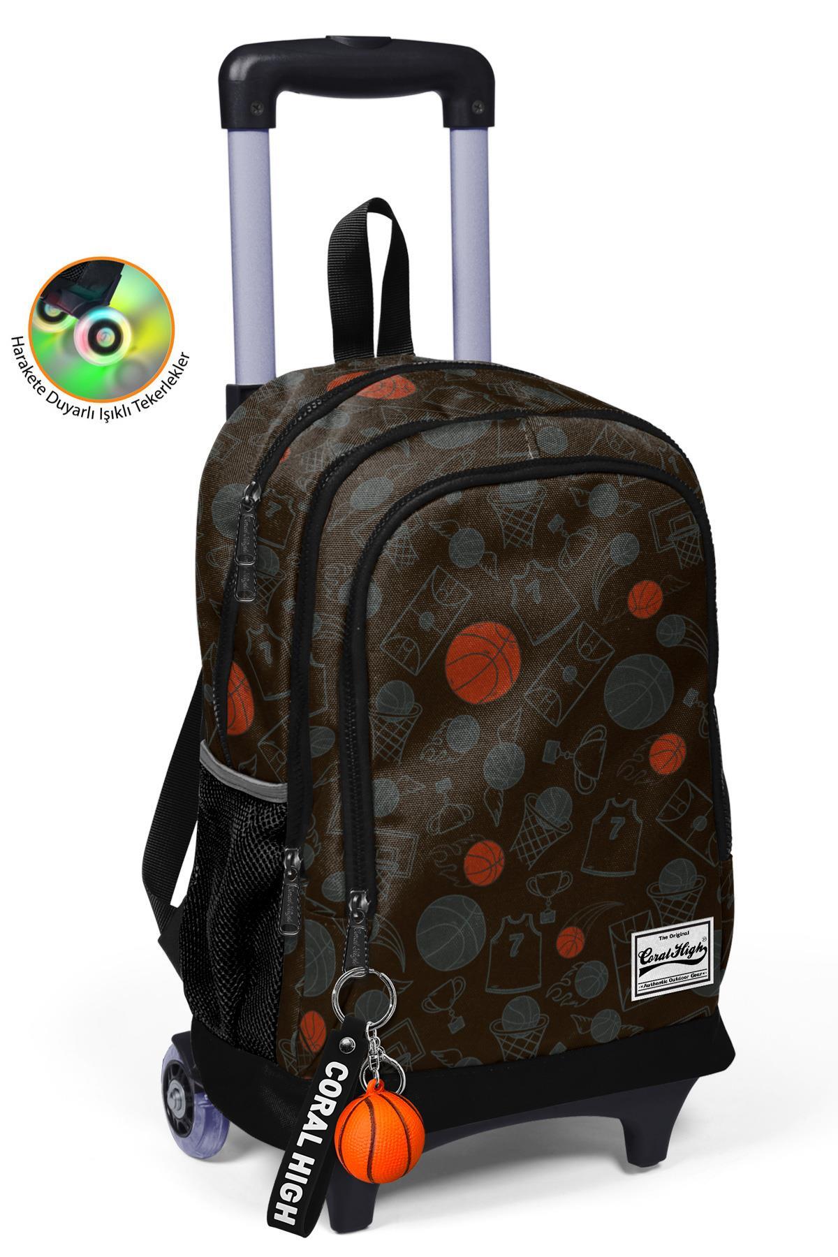 Coral High Kids Siyah Koyu Kahve Basketbol Desenli Üç Bölmeli Çekçekli Okul Sırt Çantası 23134