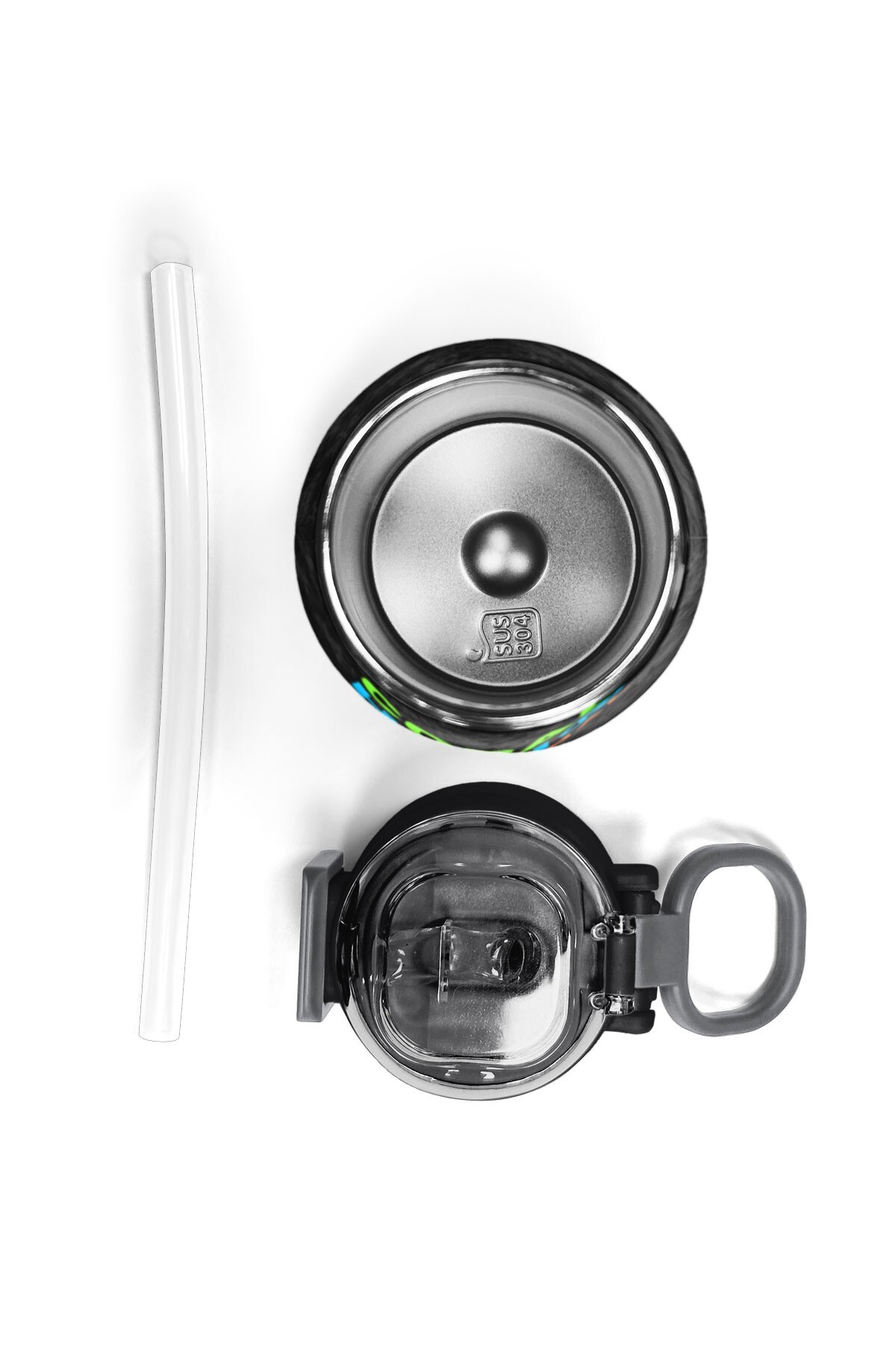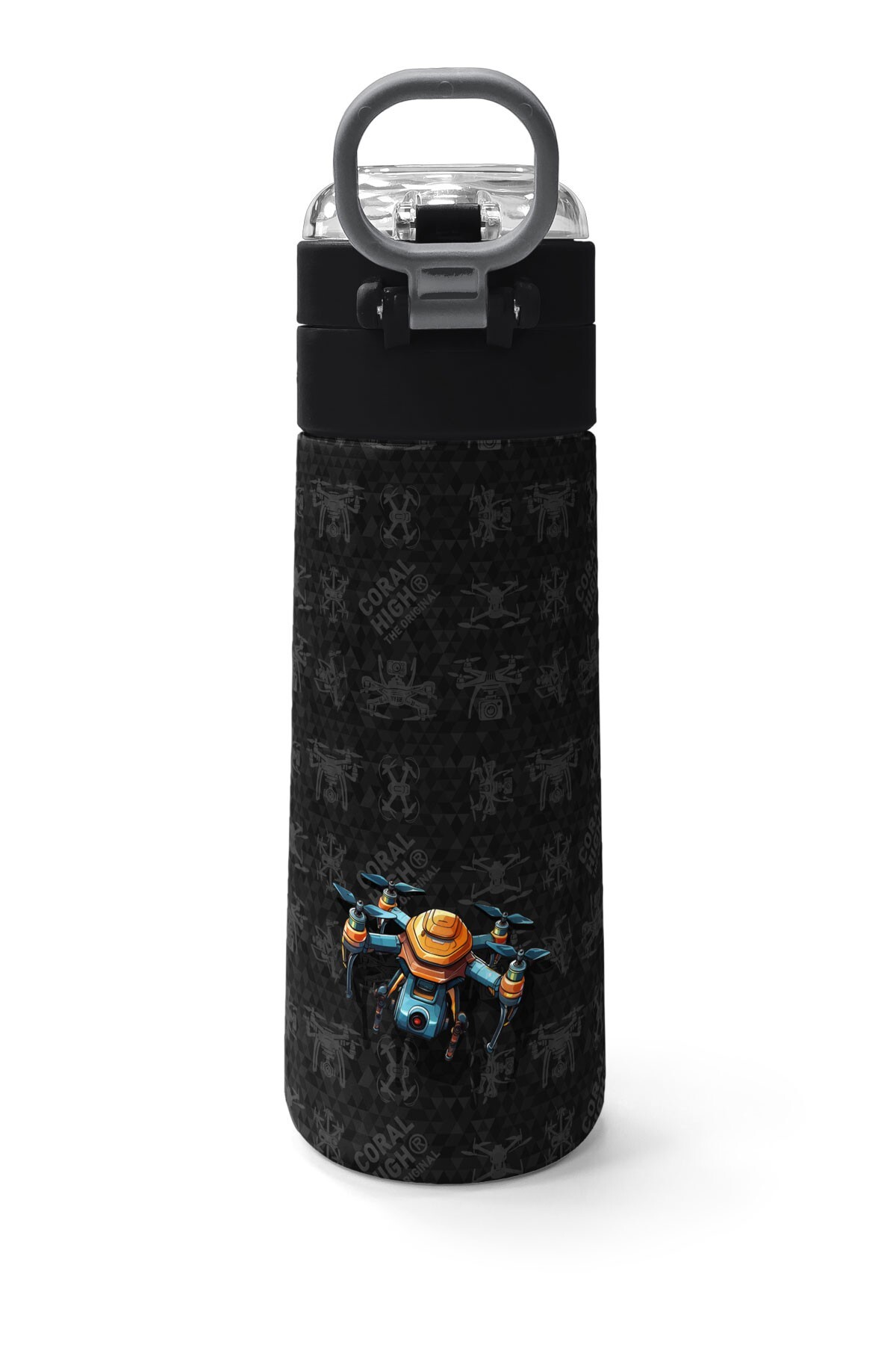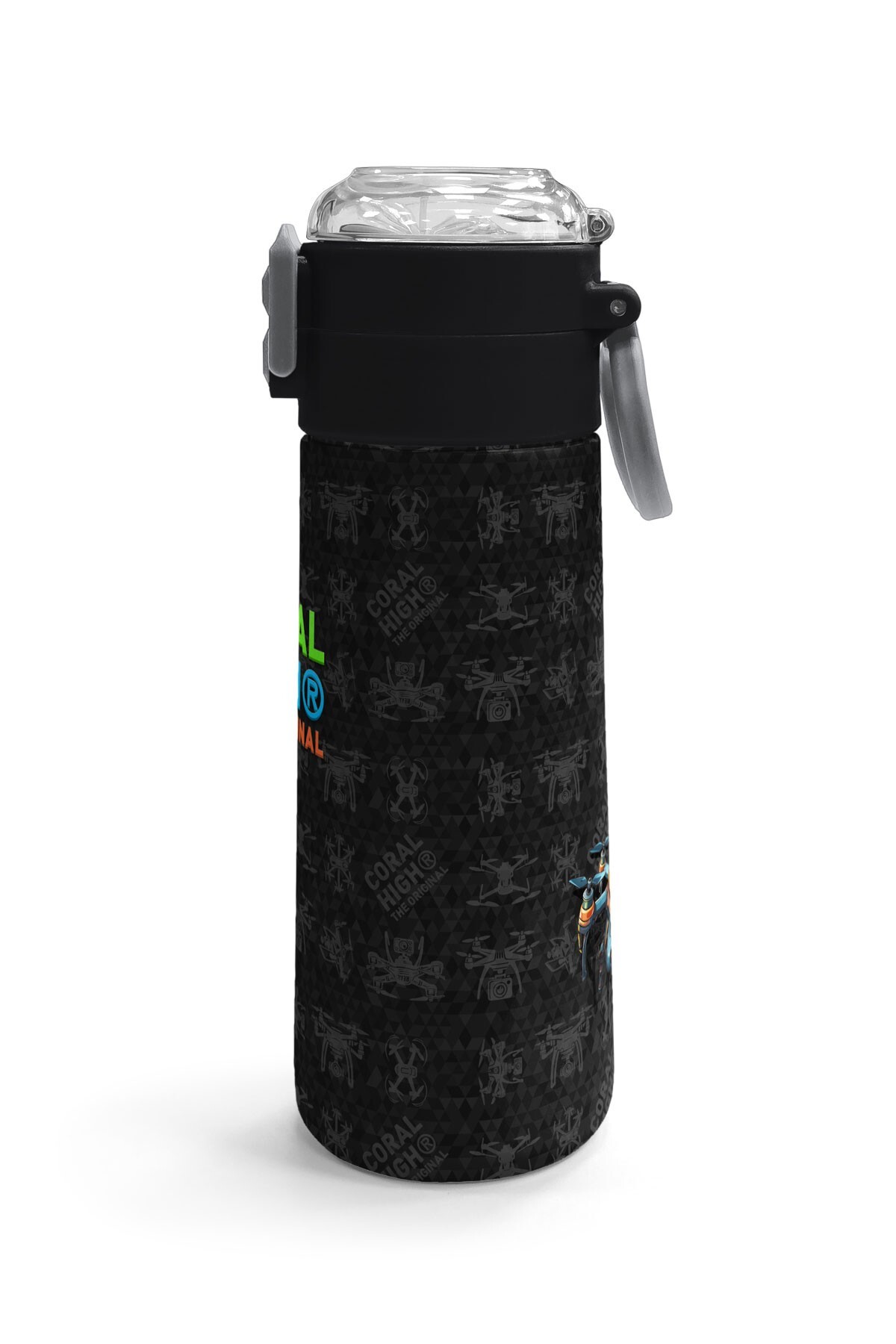 Coral High Kids Siyah Drone Desenli Pipetli ve Direkt İçim Çelik Termos 500 ml 31891